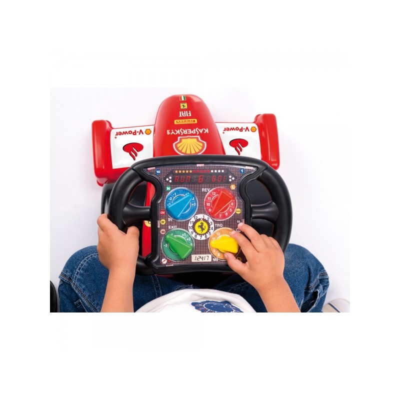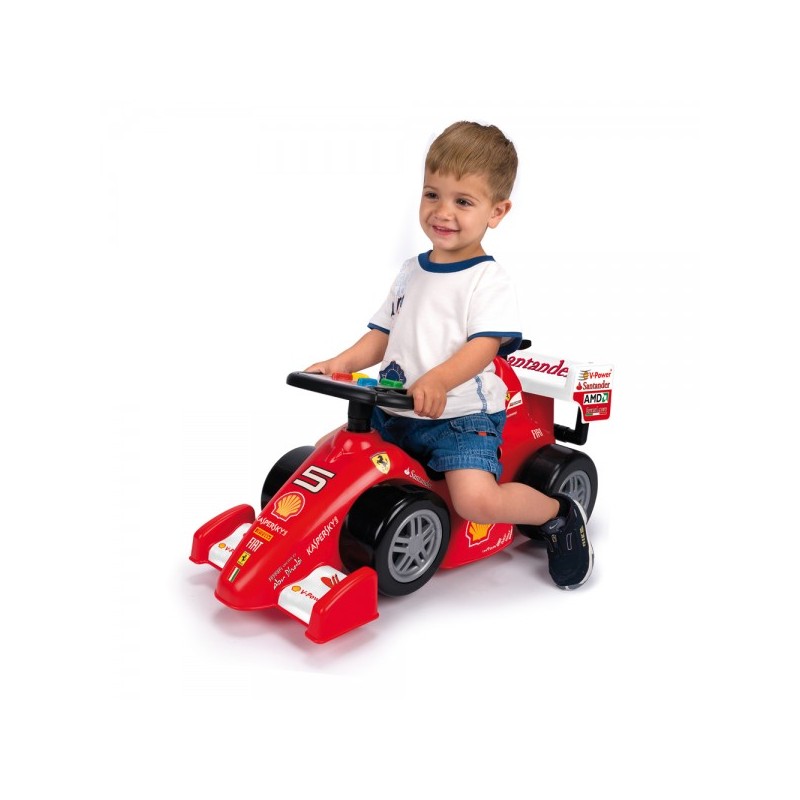 The Ferrari F1 riding of FEBER will follow the child in his first steps. This toy early childhood by the colors of the famous car of the formula 1consente both push the child, both allowing it to move independently with his legs. This toy is ingenious has a handle under the rear wing to help the child to walk by pushing it. In addition, a compartment for objects and games is included. The steering wheel is interactive of this sports vehicle is equipped with a dashboard with buttons and rotary sounds.