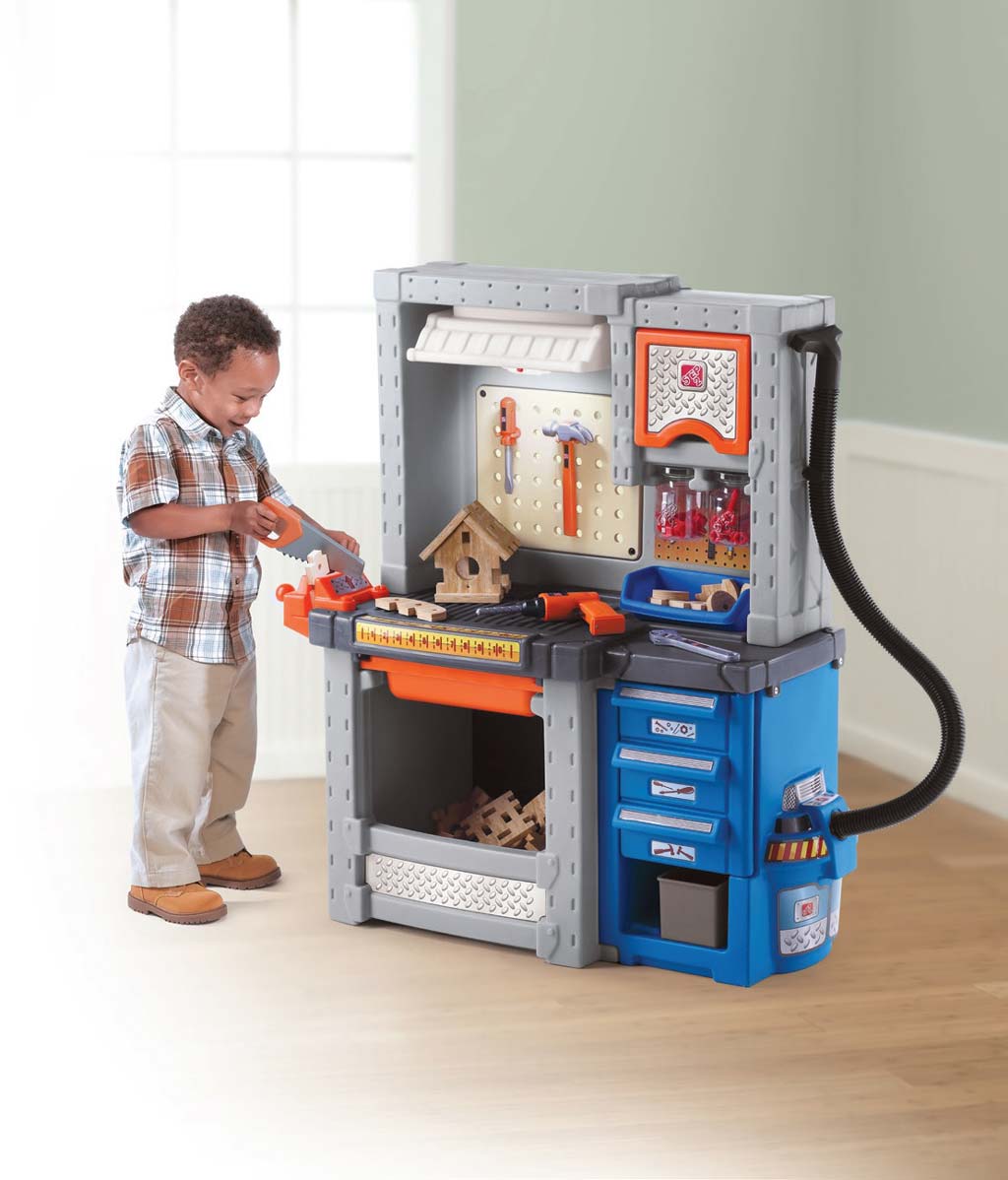 È importante scegliere un banco da lavoro che possa accompagnare il bambino durante la crescita, adattandosi alle diverse età, per dare la possibilità di giocare insieme anche con fratelli ed amici. Grazie ai ganci e agli appositi spazi contenitivi previsti per utensili e accessori, il bambino imparerà a mettere in ordine le sue cose, sapendo sempre dove si trovano tutte le cose di cui ha bisogno per giocare.