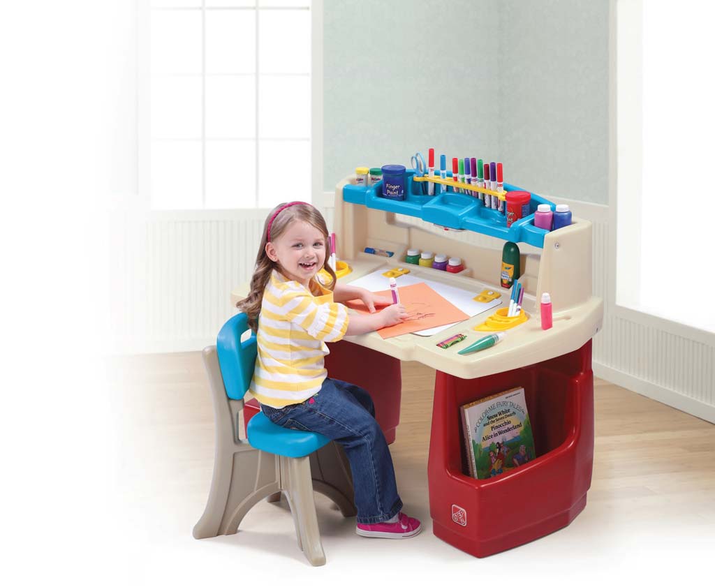 Come migliorare l’immaginazione dei vostri bambini attraverso un gioco che sia al tempo stesso educativo e divertente? Con le scrivanie-gioco, spazi creativi pensati appositamente per i bambini in fase di crescita. Qui si possono riporre in maniera ordinata pastelli, pennelli, matite e tutto l’occorrente per dare libero sfogo alla propria fantasia. Perfetti banchi per attività creative. Superfici ampie sulle quali disegnare e creare, cassetti estraibili, mensole robuste e colorate, vani portaoggetti e tanto altro.