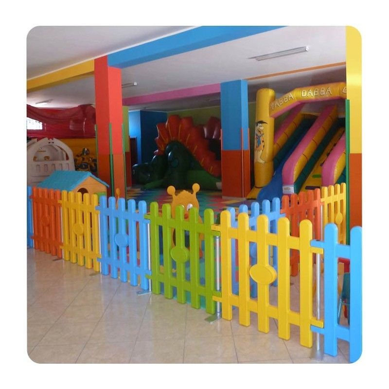 Colorful fence made of plastic ideal for the division and enclosure of areas from the game. Thanks to the central space, oval you can customize it with your logo ( to customer care). Ideal for playroom, playground, bathing establishments, shopping malls. Pole with base (sold separately).