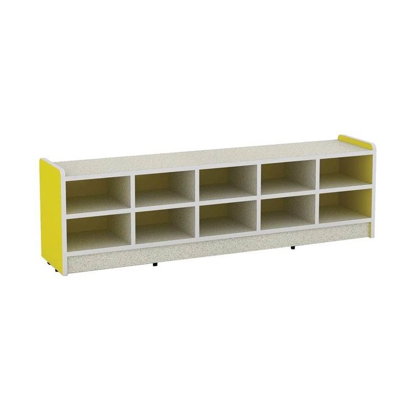 Mobile in agglomerate wood with chamfered corners and storage spaces for quick and useful accommodation. Ideal for school children, nursery, playroom, play areas.