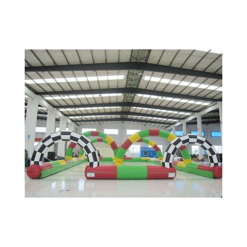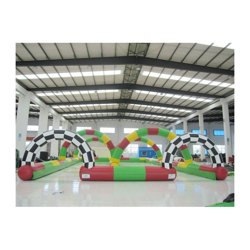 Coloratissima pista per Quad e Mini Quad elettrici. Percorso ad ovale con archi sopraelevati. Telo - minigonna di protezione. Conforme alla UNI EN 14960. Ideale per parchi gioco, parchi divertimento, giochi all'aperto, spiagge, stabilimenti balneari, aree di intrattenimento in generale.