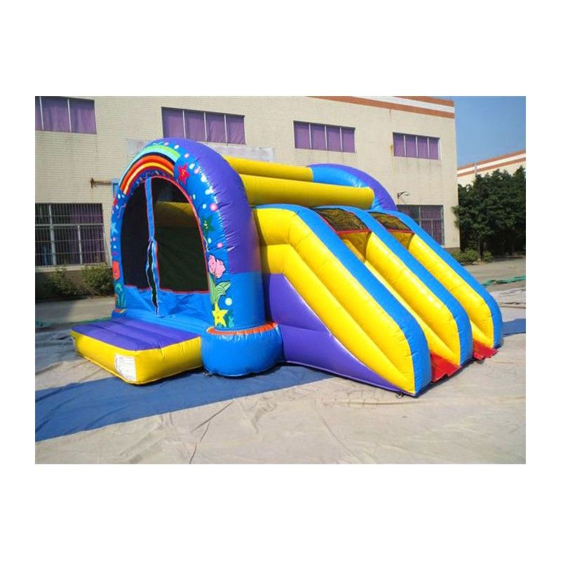 • Coloratissimo gonfiabile Percorso Arcobaleno. La struttura è dotata di un modulo salta salta completo di ostacoli ed uno scivolo ampio per un divertimento garantito. Conforme alla UNI EN 14960 Ideale per parchi gioco, parchi divertimento, giochi all'aperto, spiagge, stabilimenti balneari, aree di intrattenimento in generale, ludoteche, aree di ristoro, alberghi, ristoranti e pizzerie, sala feste.