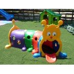 The game from the outside in the shape of a caterpillar where children can climb, play inside. Easy to assemble with parts that are resistant to weather conditions transforming the tunnel into a perfect play mate. Safe and stable The plastic material is sturdy