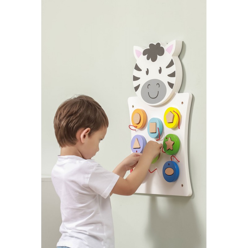 • Interactive panel in the shape of a teddy Bear with the different elements and games to encourage the ability of learning and reasoning of children. DIM: CM 91 x 32 x 6 (SP)