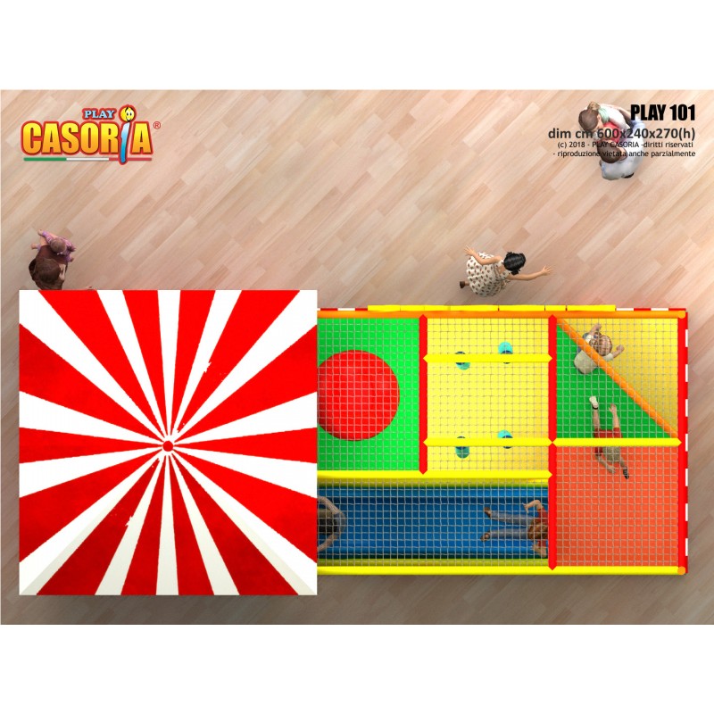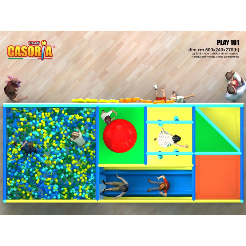 Playground modular two-storey building with the slip in the bath balls. Thanks to its compact shape but still impact this playground is suitable for those who have space and budget are limited. Playground ideal for playgrounds, amusement parks, shopping malls, cinemas, bars, restaurants, pizzerias.