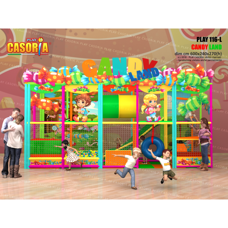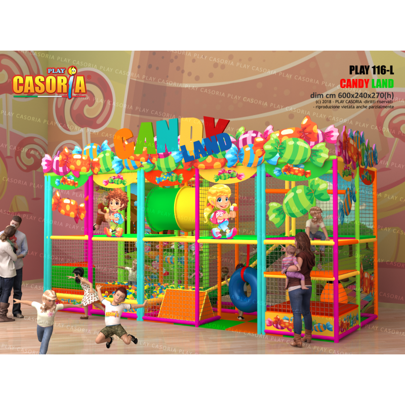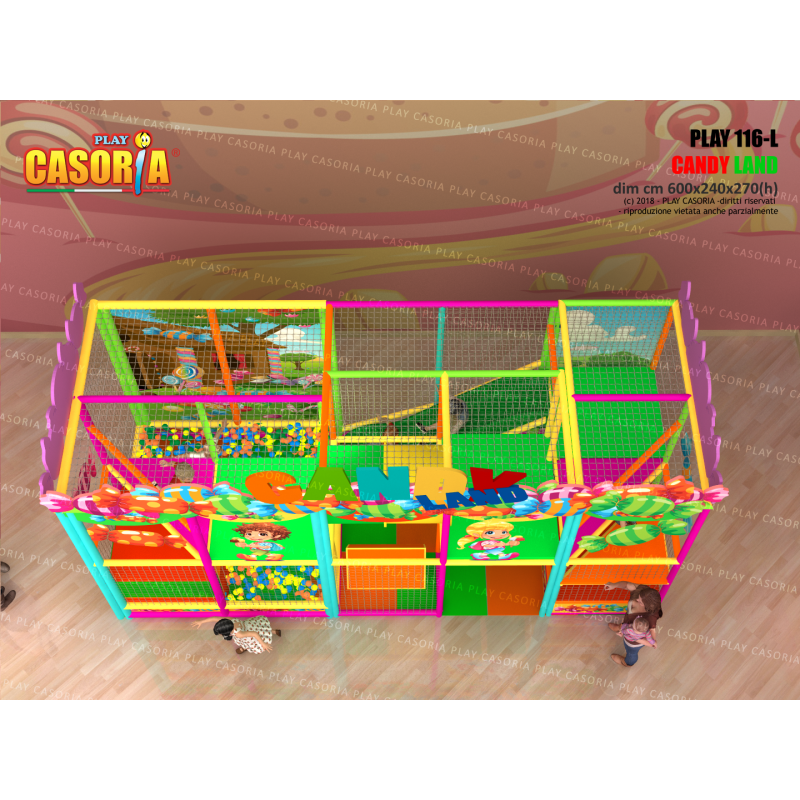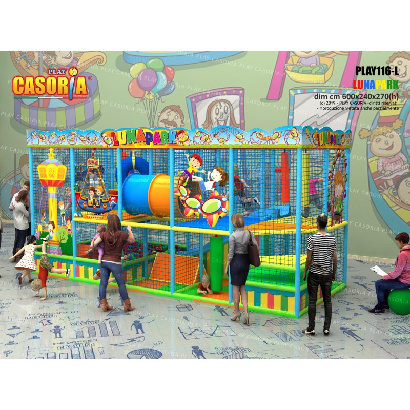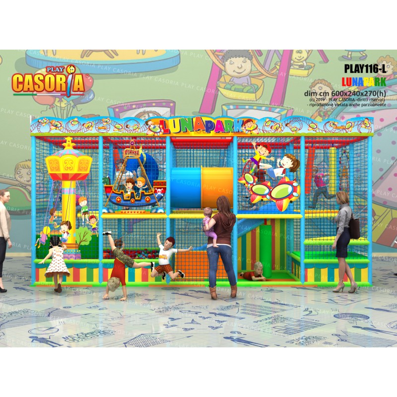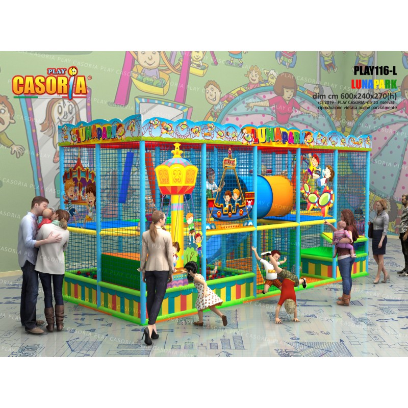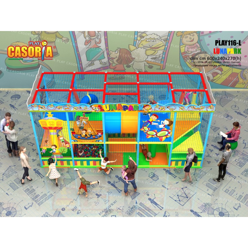 Playground modular two-storey building with the slip in the bath balls. Thanks to its compact shape and to the presence of so many games and accessories Is particularly suitable for those looking for lots of fun in a small space. Playground ideal for playgrounds, amusement parks, shopping malls, cinemas, bars, restaurants, pizzerias