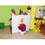 The central leg, combining the two front panels, is composed of a riser, the upper, rectangular section 60x20xsp.2, at the end of which is provided a metal plate with a thickness of 10 mm, which serves for the fixation of the upper top. The post top is welded to a profile metal, square section 40x40xsp.1,5, T, which acts as the support plan. The latter presents in the lower part, a sealing cap made of plastic with adjustable foot..