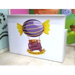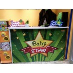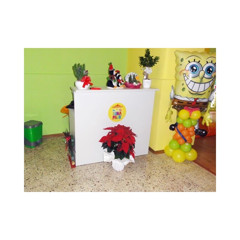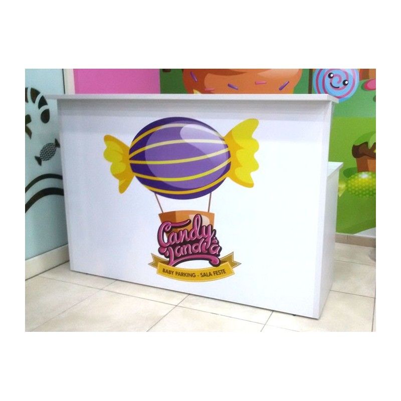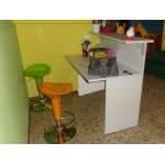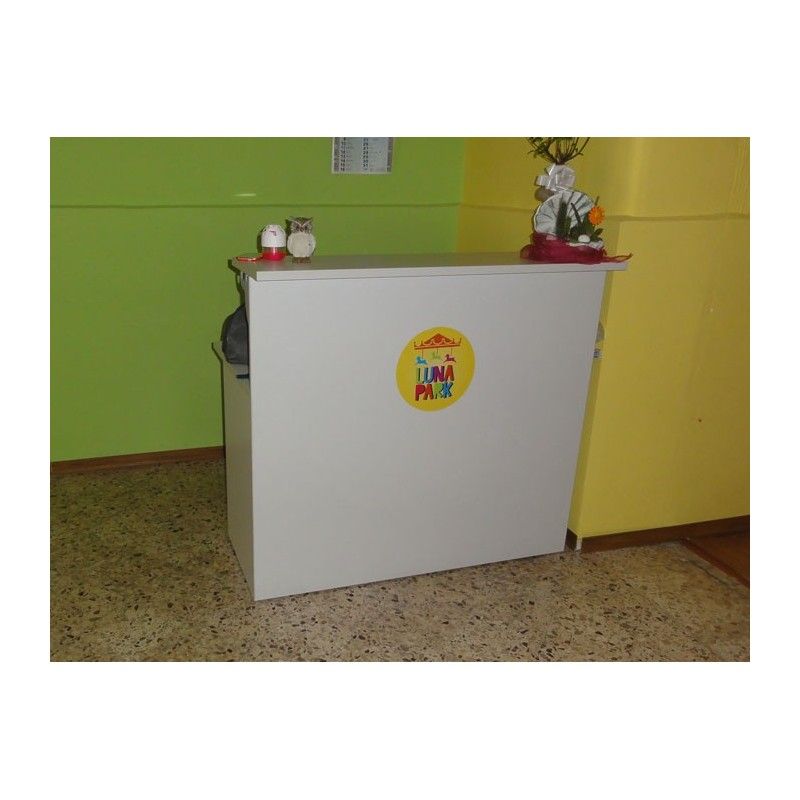The reception desk, linear composed of a support structure of metal, floor work and wood top. Ideal for playroom, school, kindergarten, children's areas.