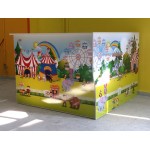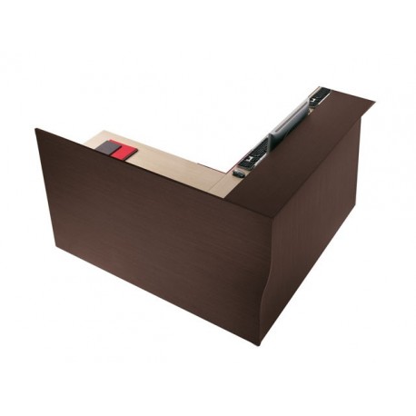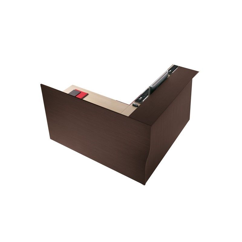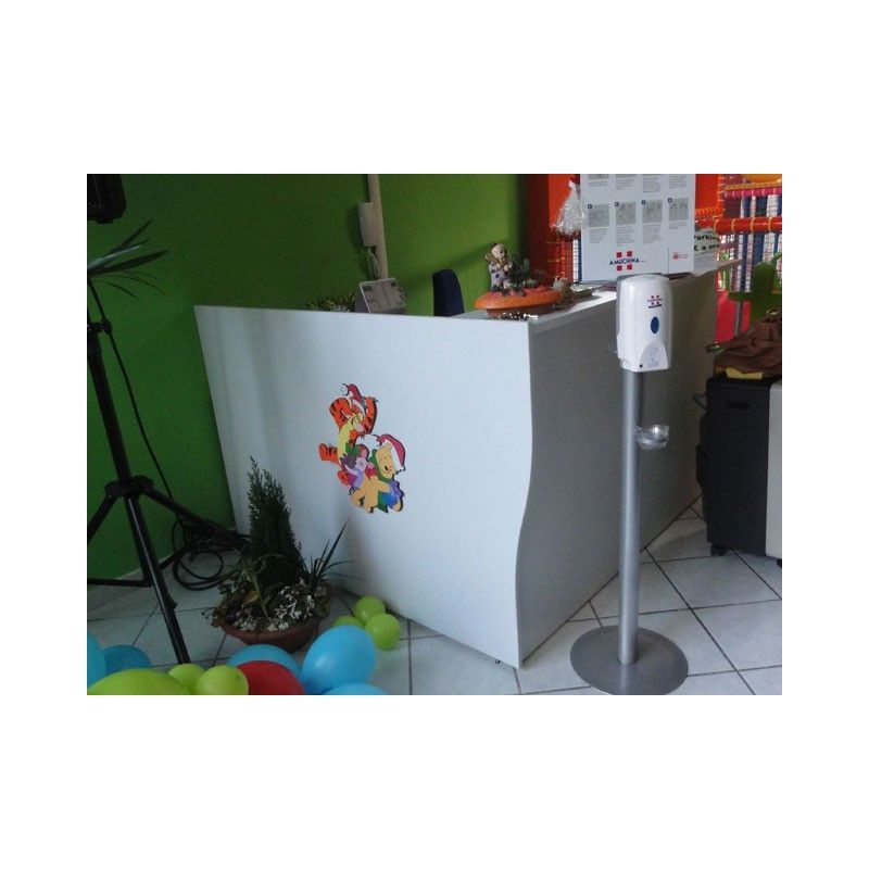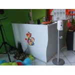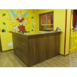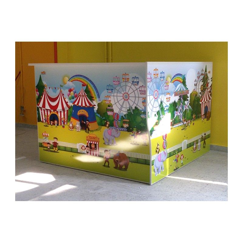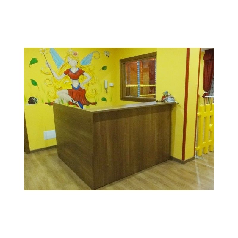 The reception desk angle made by a frame of the metal bracket, work surface and wood top. Ideal for playroom, school, kindergarten, children's areas.