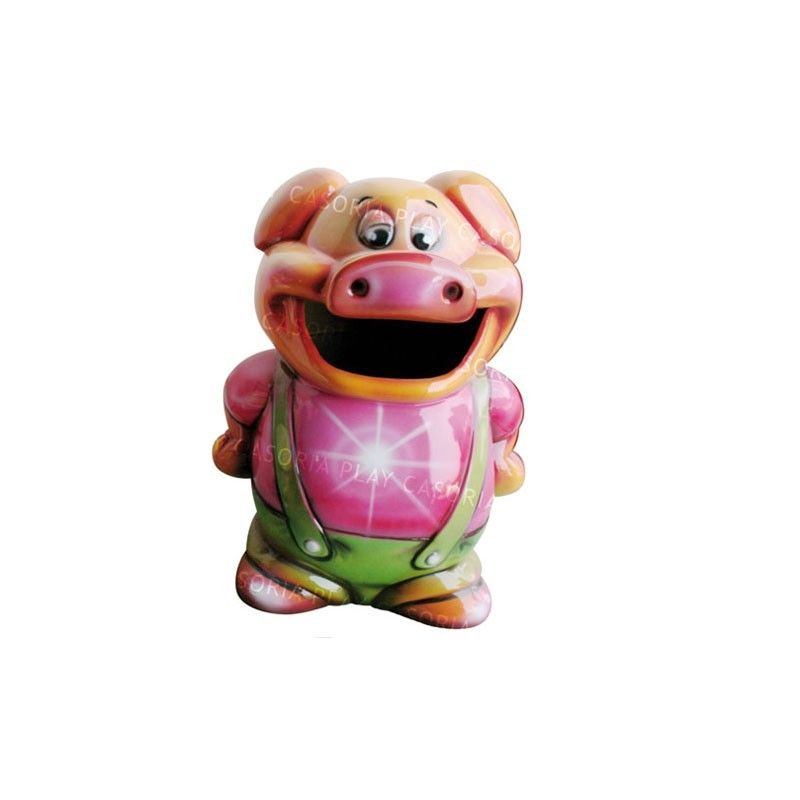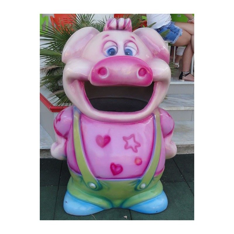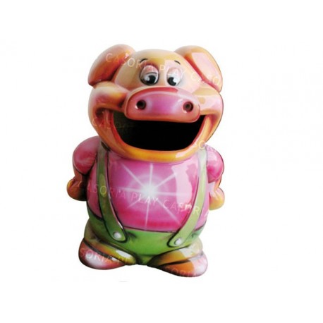 Dustbin fantasy in the shape of a pig, is very large, so you can hide baskets of large size. DIM: CM. 80 X 80 X 130 (H). Produced in fiberglass.