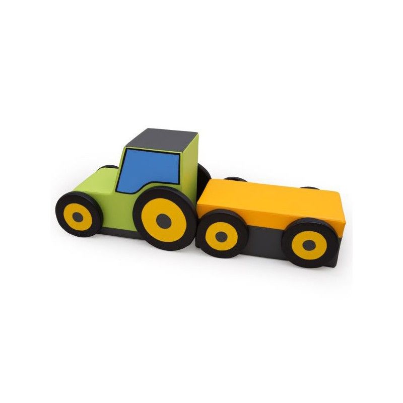 Set of 10 pieces Tractor with trailer. The set consists of 1 tractor with wheels removable attached via velcro and 1 trailer with wheels that are removable. Ideal for schools, nurseries, playgrounds. Dim. tractor: cm. 70 x 48 x 60 (h), dim. trailer: cm. 80 x 48 x 30 (h)