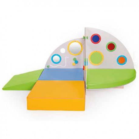 Path multigioco interactive with climbing, which consists of 7 pieces. Consisting of 3 walls for climbing with hand-holds, and games, and 4 soft pillows to protect the child from any falls. DIM: CM. 288 X 144 X 100,5 (H)