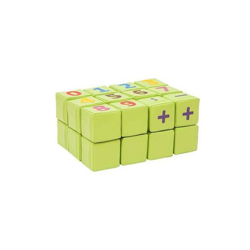 The set is composed of 24 cubes on the mathematical topic, which can be used for the children's learning in a fun way, having the ability to compose new forms and place the cubes in order to obtain some simple mathematical operations. DIM: CM. 15 X 15 X 15 (H) (cube dimensions)