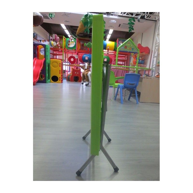 Plastic table with legs foldable, easily storable, this product it is ideal for use in bars, restaurants, halls, parties, playgrounds,