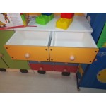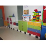 Mobile in legno agglomerato con elementi decorativi e scenografici. Accessoriato con vani portaoggetti per una rapida ed utile sistemazione. Ideale per scuola infanzia, nido, ludoteche e aree giochi.