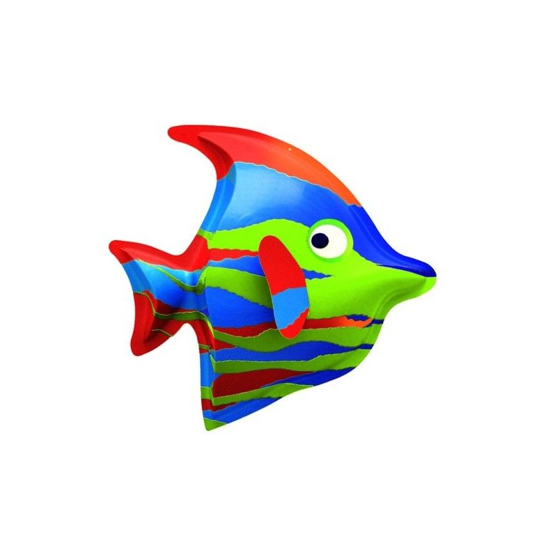 La decorazione tridimensionale a forma di pesce tropicale, realizzata in termoformato, è un elemento scenografico di grande impatto visivo, perfetto per portare vivacità e colore in qualsiasi spazio. Con il suo design giocoso e le tonalità accese, rappresenta una scelta ideale per ambientazioni a tema marino o tropicale.