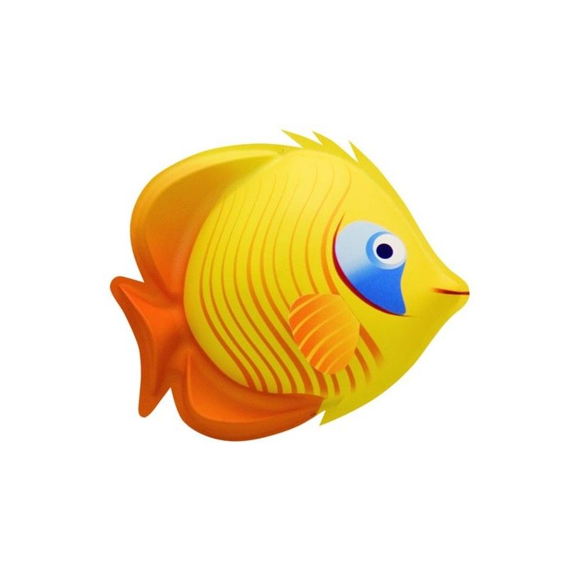 La decorazione tridimensionale a forma di pesce tropicale è realizzata in termoformato ed è pensata per portare colore, stile e allegria in qualsiasi spazio. Con le sue vivaci tonalità gialle, arancioni e nere, richiama i colori della barriera corallina e crea un'atmosfera marina coinvolgente.
