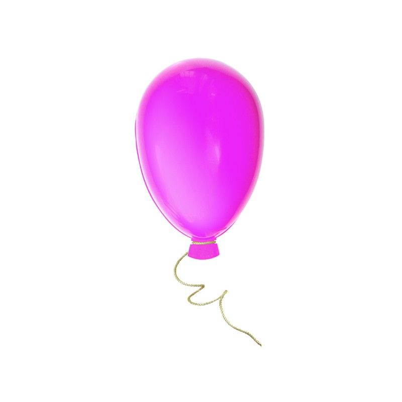 Decorazione tridimensionale a forma di palloncino fucsia, realizzata in materiale termoformato per garantire leggerezza e resistenza. Dallo stile allegro e vivace, è perfetta per dare un tocco di colore e movimento a qualsiasi ambiente dedicato ai bambini.