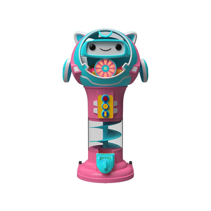 Il Distributore Palline Premio TOBY Rosa è una macchina automatica dal design simpatico e colorato, pensata per attirare l’attenzione dei bambini grazie alla sua forma giocosa a robot e alla combinazione di colori vivaci. Ideale per aree gioco, sale per feste, centri commerciali e parchi divertimento, TOBY distribuisce palline premio in modo divertente e coinvolgente. La spirale trasparente centrale consente ai piccoli utenti di seguire con lo sguardo il percorso della pallina, rendendo l'esperienza ancora più entusiasmante.