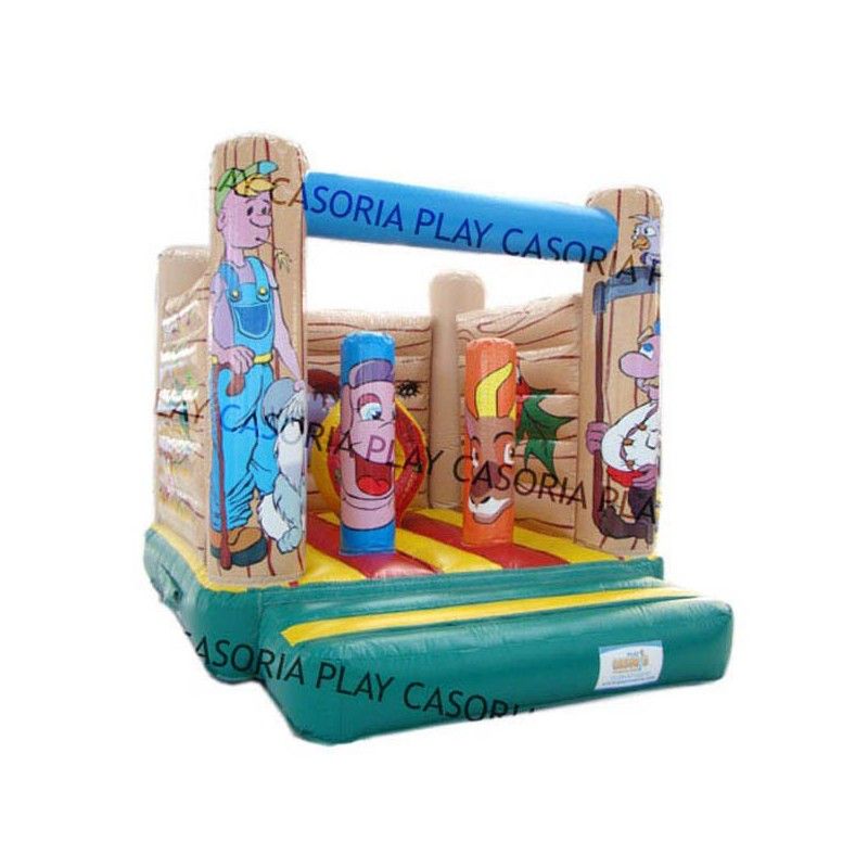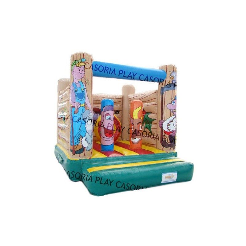 Gonfiabile salta salta Fattoria. Un divertente salto nella campagna insieme ai due fattori. Tema tipico anche per gli ostacoli e punching interni. Conforme alla UNI EN 14960. Ideale per parchi gioco, parchi divertimento, giochi all'aperto, spiagge, stabilimenti balneari, aree di intrattenimento in generale, ludoteche, aree di ristoro, alberghi, ristoranti e pizzerie, sala feste.