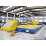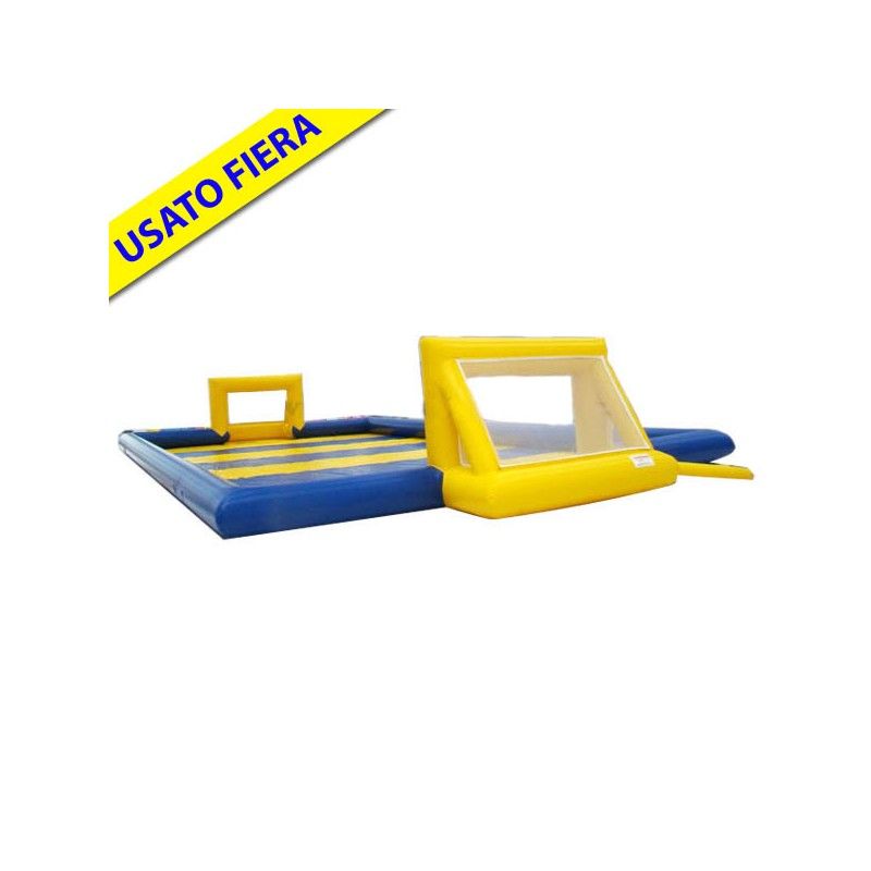 USATO FIERA. Il calcetto saponato è una variante del gioco del calcetto trafizionale. L'intera area di gioco è cosparsa di acqua e sapone, particolare che rende instabile la posizione dei giocatori. La difficoltà e la bellezza del gioco consistono proprio nel correre e mantenere l'equilibrio sul fondo scivoloso. Le regole assomigliano a quelle del normale calcio a 5. Data la struttura del campo da gioco, è ammesso il gioco di sponda, e la rimessa laterale è prevista solo nel caso in cui la palla esca completamente dal campo. I giocatori, cinque per squadra, devono indossare un casco di protezione e non possono porre in essere comportamenti antisportivi o pericolosi, pena l'ammonizione o, nei casi più gravi, l'espulsione.
