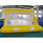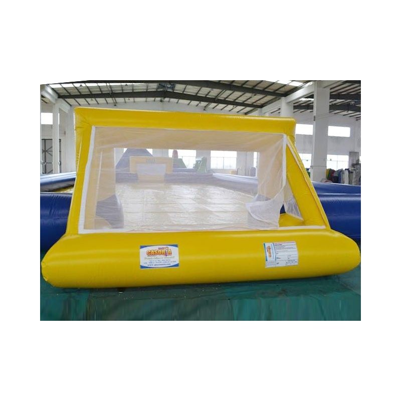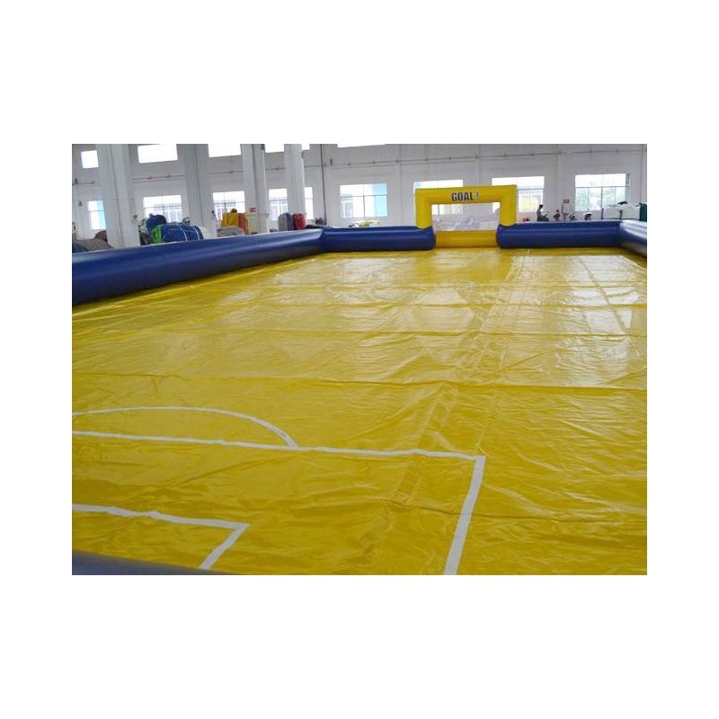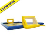 USATO FIERA. Il calcetto saponato è una variante del gioco del calcetto trafizionale. L'intera area di gioco è cosparsa di acqua e sapone, particolare che rende instabile la posizione dei giocatori. La difficoltà e la bellezza del gioco consistono proprio nel correre e mantenere l'equilibrio sul fondo scivoloso. Le regole assomigliano a quelle del normale calcio a 5. Data la struttura del campo da gioco, è ammesso il gioco di sponda, e la rimessa laterale è prevista solo nel caso in cui la palla esca completamente dal campo. I giocatori, cinque per squadra, devono indossare un casco di protezione e non possono porre in essere comportamenti antisportivi o pericolosi, pena l'ammonizione o, nei casi più gravi, l'espulsione.