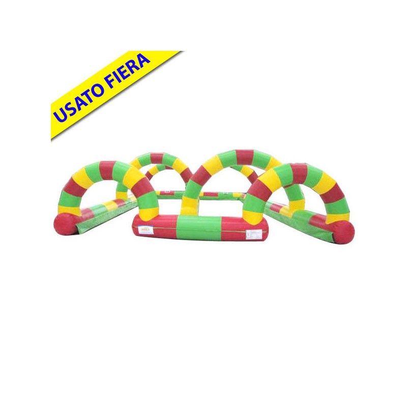 USATO FIERA. Coloratissima pista per Quad e Mini Quad elettrici. Percorso ad ovale con archi sopraelevati. Telo - minigonna di protezione. Conforme alla UNI EN 14960. Ideale per parchi gioco, parchi divertimento, giochi all'aperto, spiagge, stabilimenti balneari, aree di intrattenimento in generale.
