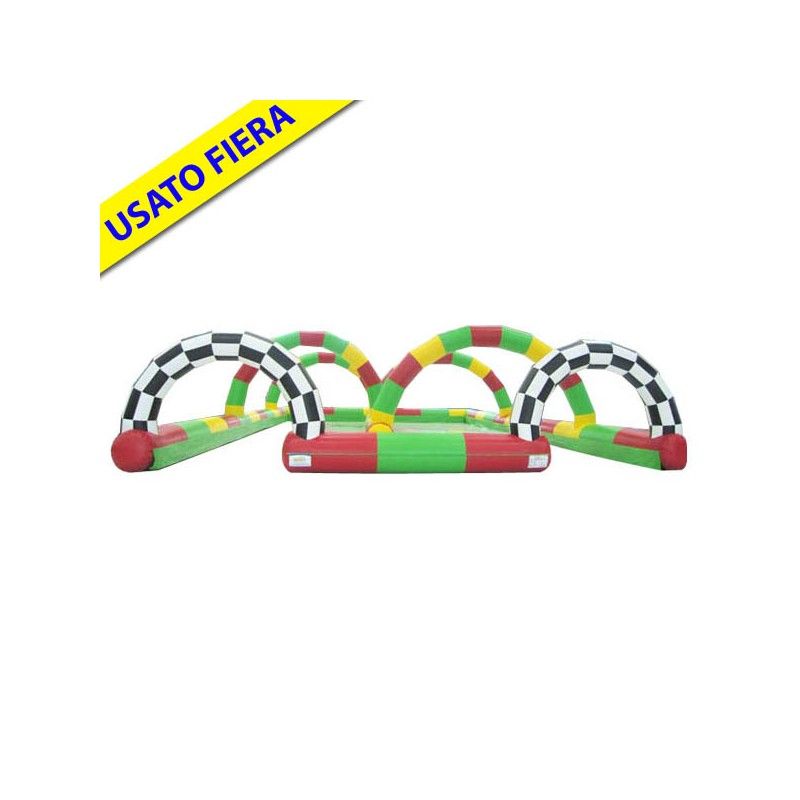 USATO FIERA. Coloratissima pista per Quad e Mini Quad elettrici. Percorso ad ovale con archi sopraelevati. Telo - minigonna di protezione. Conforme alla UNI EN 14960. Ideale per parchi gioco, parchi divertimento, giochi all'aperto, spiagge, stabilimenti balneari, aree di intrattenimento in generale.