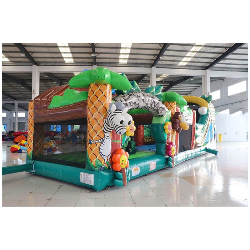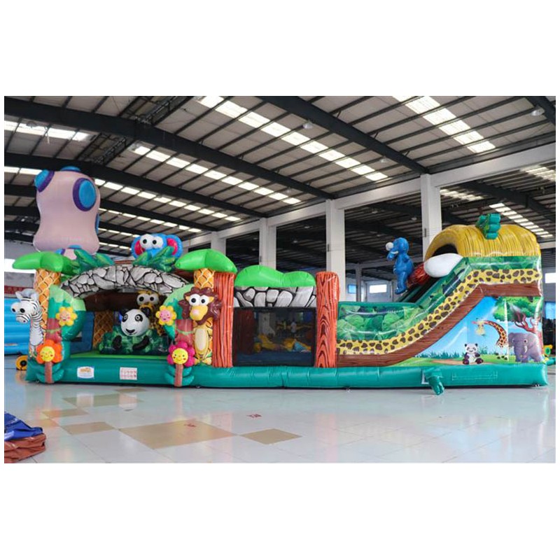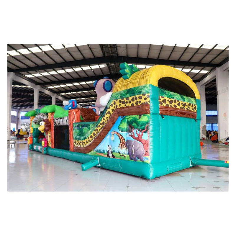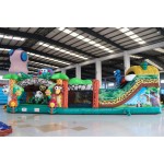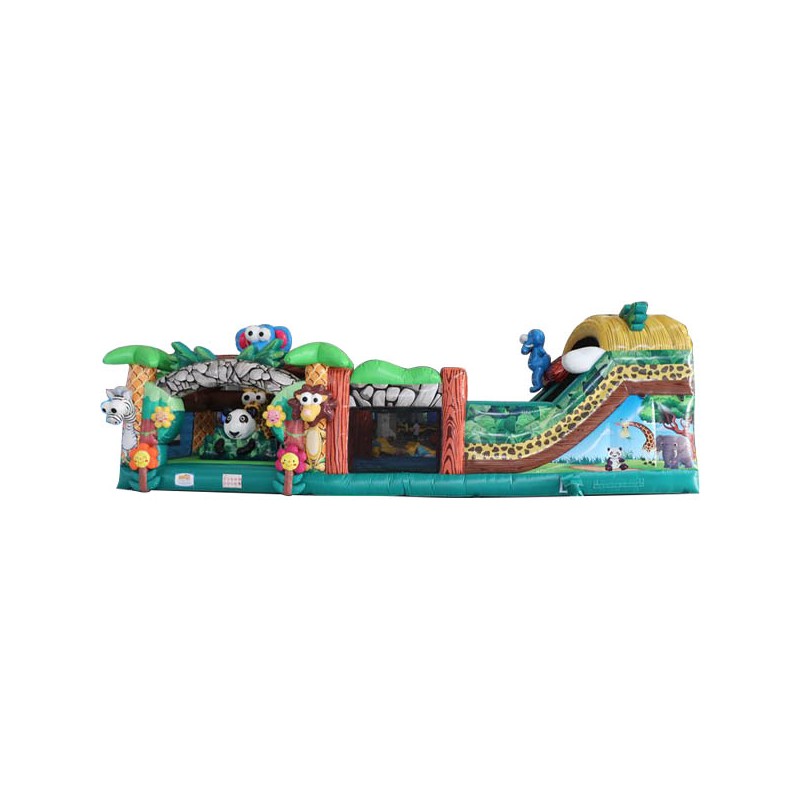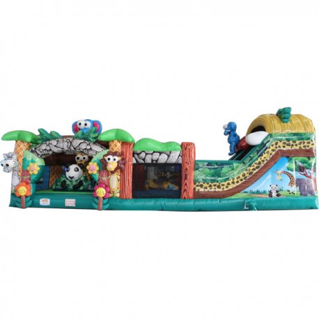 Coloratissimo percorso ad ostacoli con scivolo ed elementi decorativi che richiamano il tema del gonfiabile. Divertente ed impegnativo allo stesso tempo, dotato di reti di protezione perimetrali.Conforme alla UNI EN 14960. Ideale per parchi gioco, parchi divertimento, giochi all'aperto, spiagge, stabilimenti balneari, aree di intrattenimento in generale, ludoteche, aree di ristoro, alberghi, ristoranti e pizzerie, sala feste.
