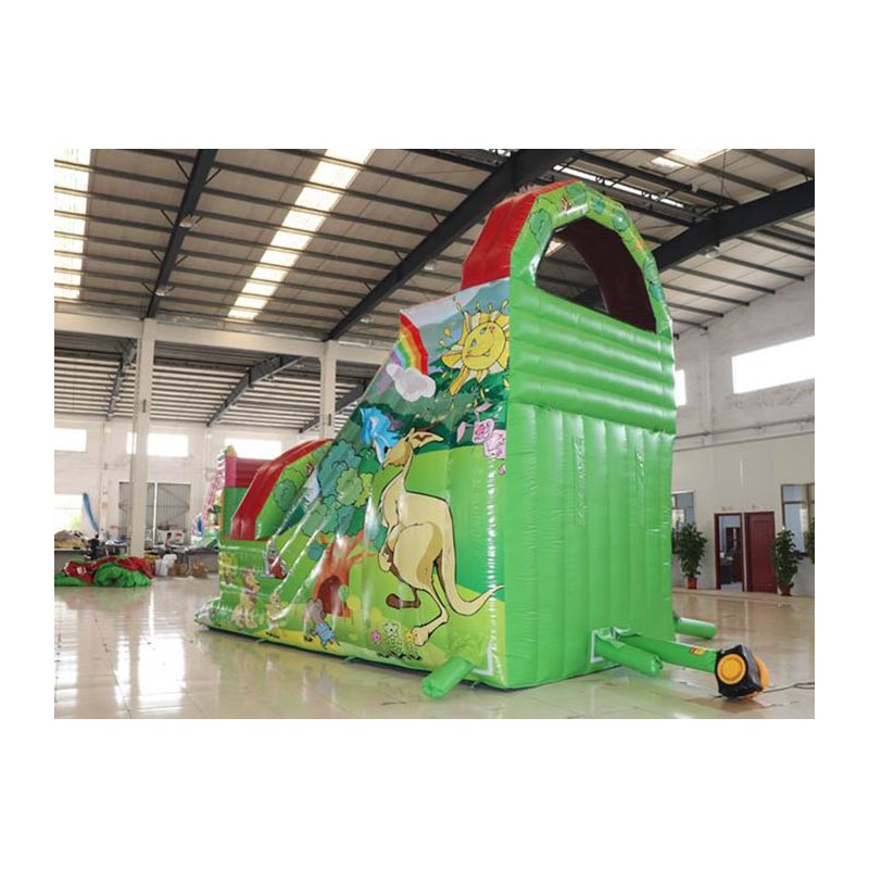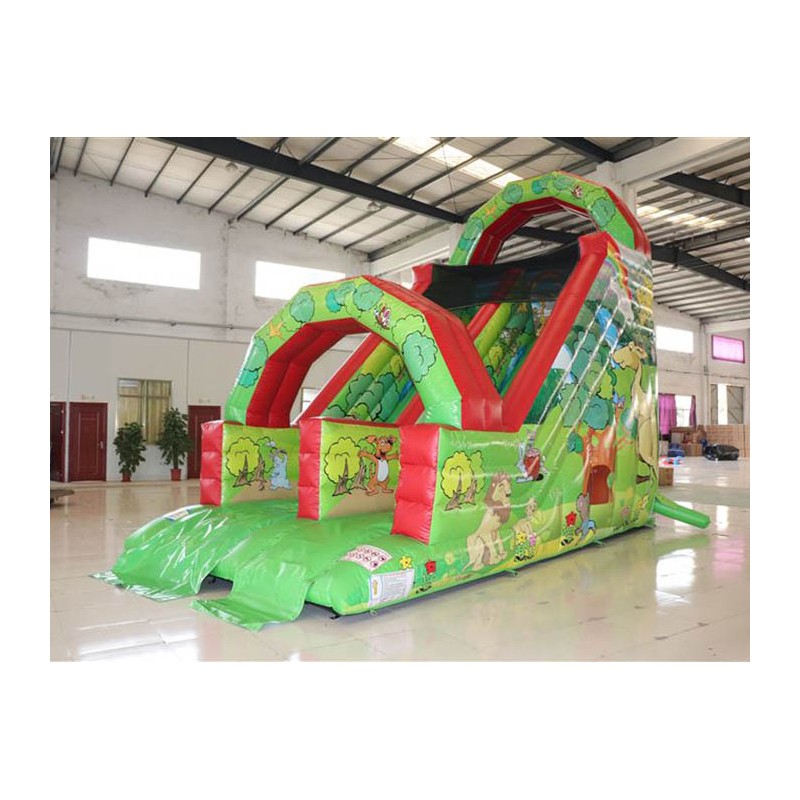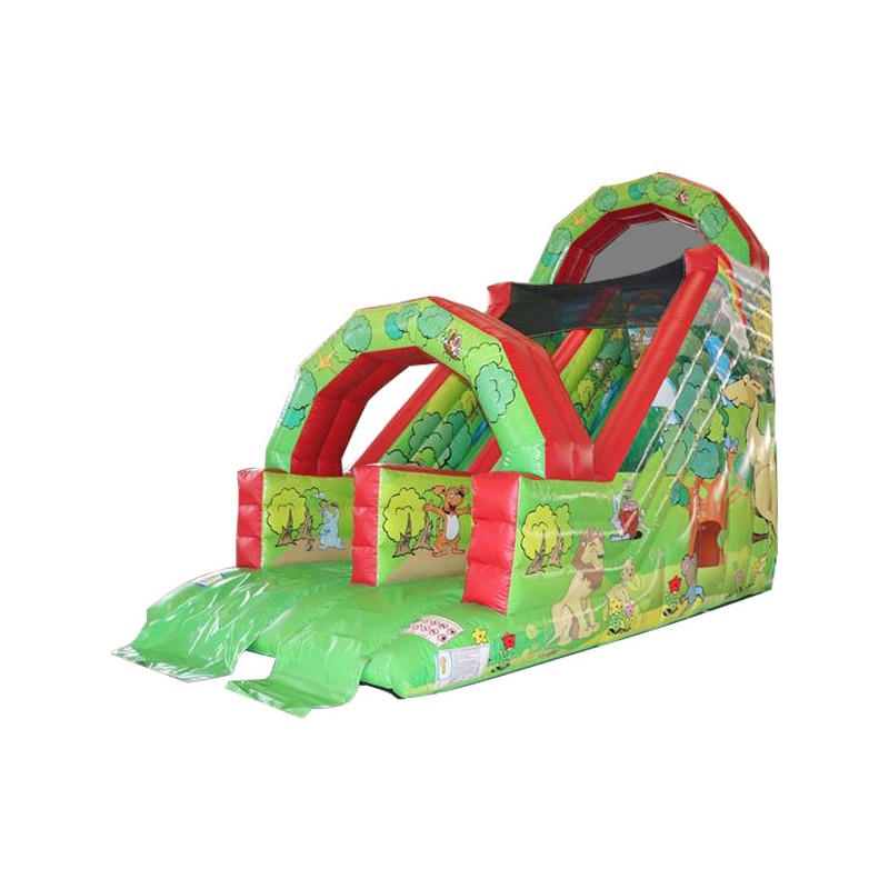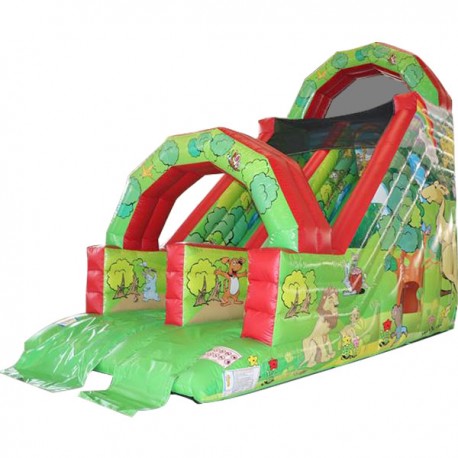 Scivolo Big Forest. Gonfiabile dai colori vivaci e di sicuro impatto. Adatto per qualsiasi attività ludica. La rete di protezione nella parte superiore conferisce ulteriore sicurezza. Conforme alla UNI EN 14960 Ideale per parchi gioco, parchi divertimento, giochi all'aperto, spiagge, stabilimenti balneari, aree di intrattenimento in generale, ludoteche, aree di ristoro, alberghi, ristoranti e pizzerie, sala feste.