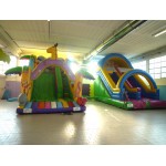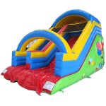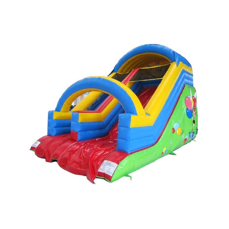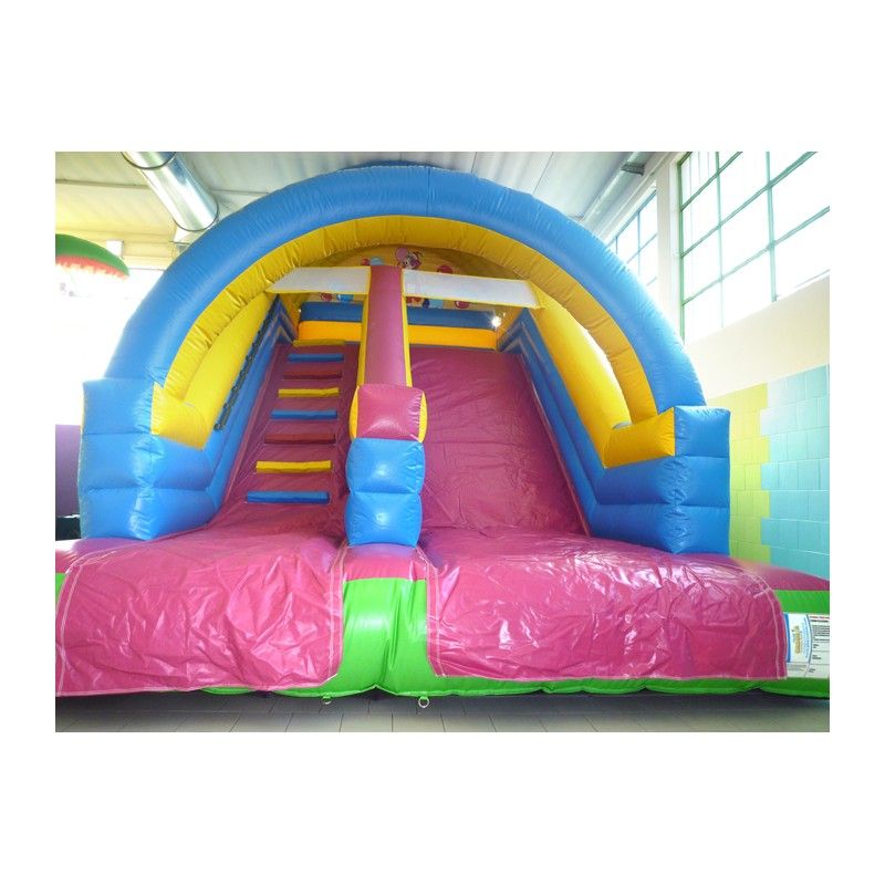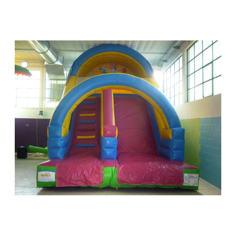 Scivolo gonfiabile di medie dimension Maxi Slide. Colorato e divertente grazie alle decorazioni con pagliacci nella parte alta della struttura.
