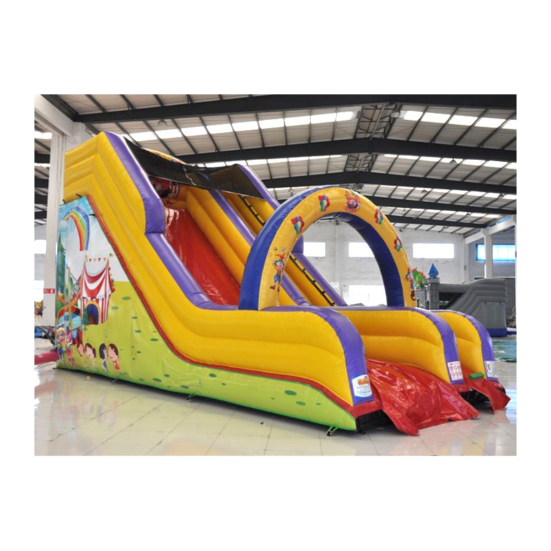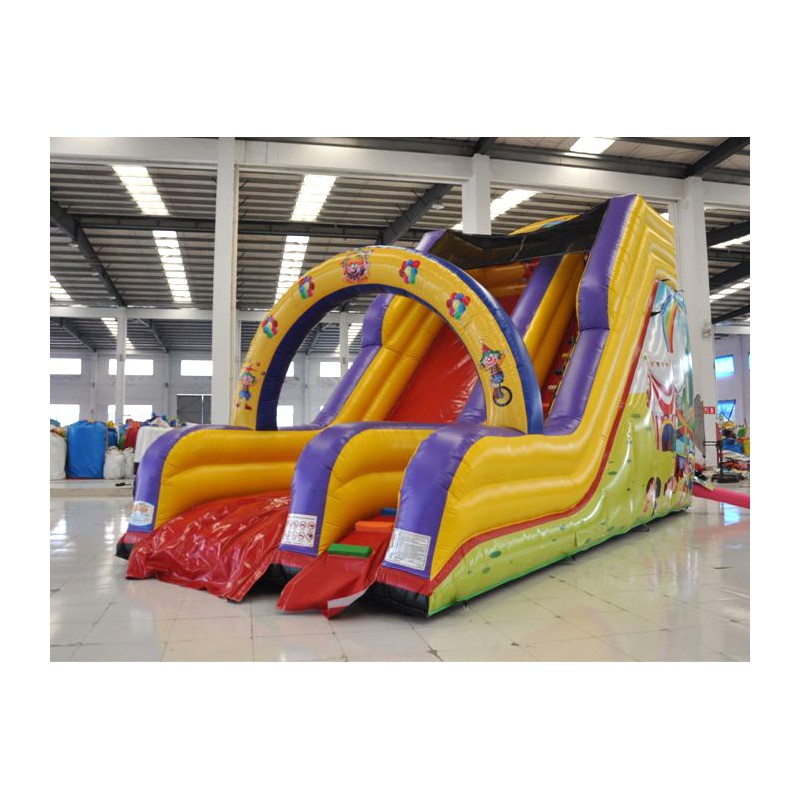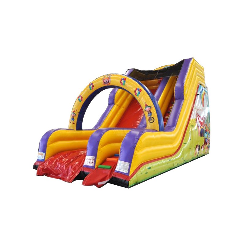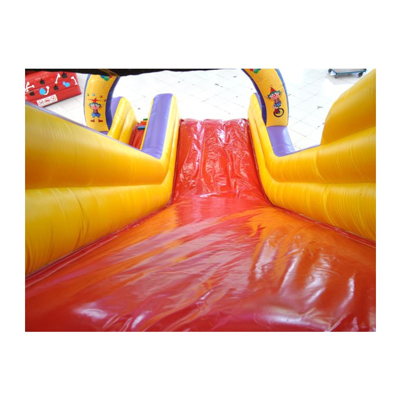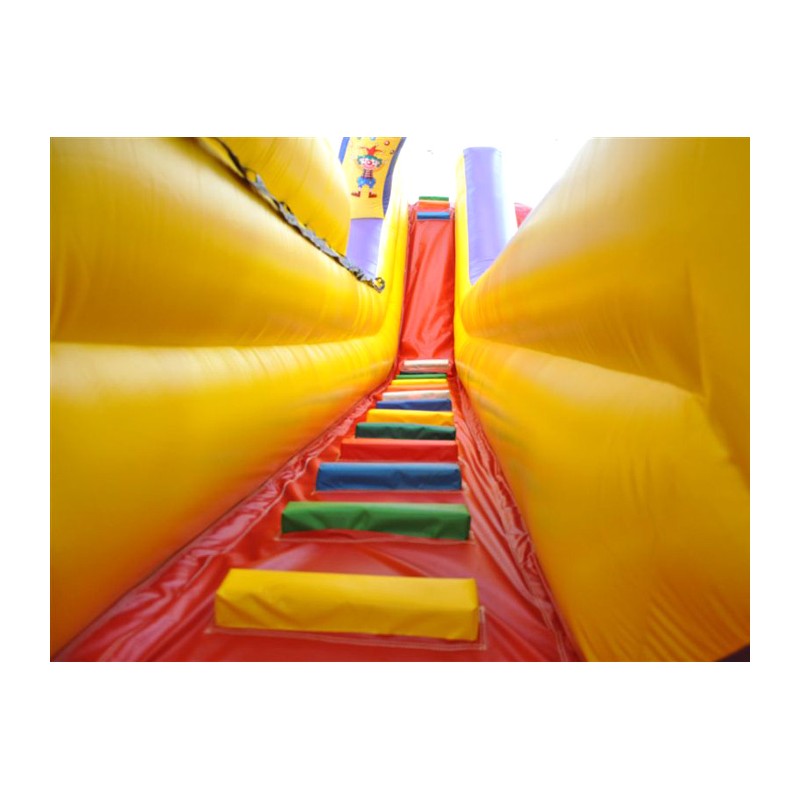 Scivolo Luna Park. Gonfiabile dai colori vivaci e di sicuro impatto. Adatto per qualsiasi attività ludica. La rete di protezione nella parte superiore conferisce ulteriore sicurezza. Conforme alla UNI EN 14960 Ideale per parchi gioco, parchi divertimento, giochi all'aperto, spiagge, stabilimenti balneari, aree di intrattenimento in generale, ludoteche, aree di ristoro, alberghi, ristoranti e pizzerie, sala feste.