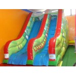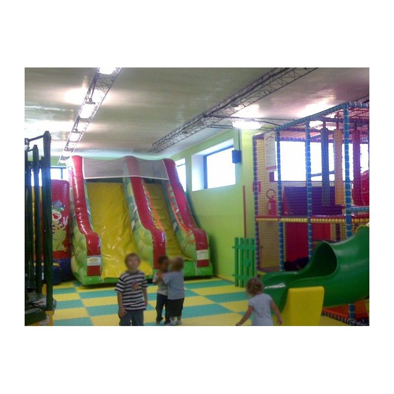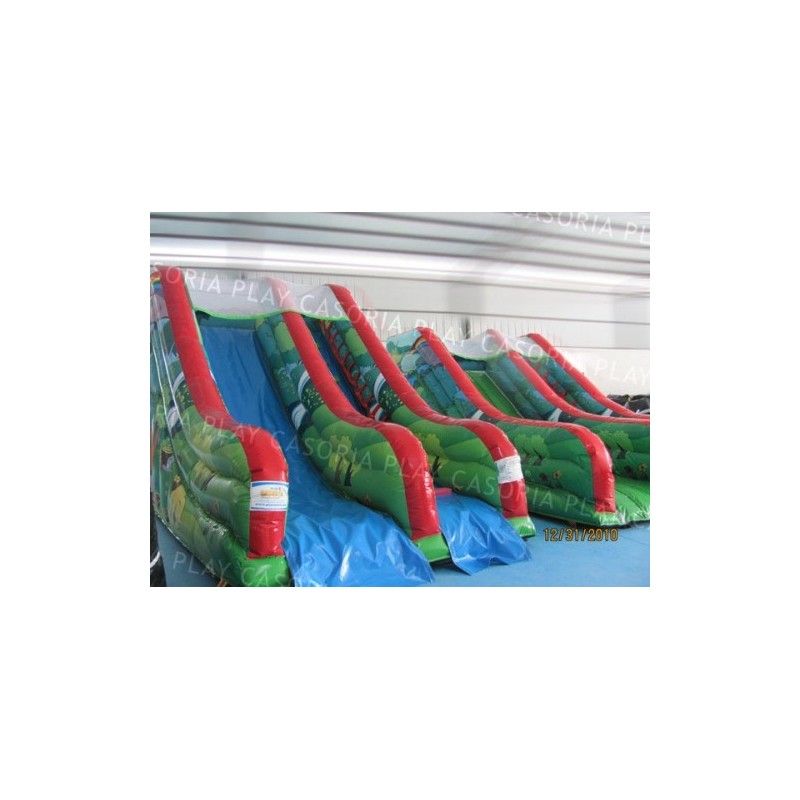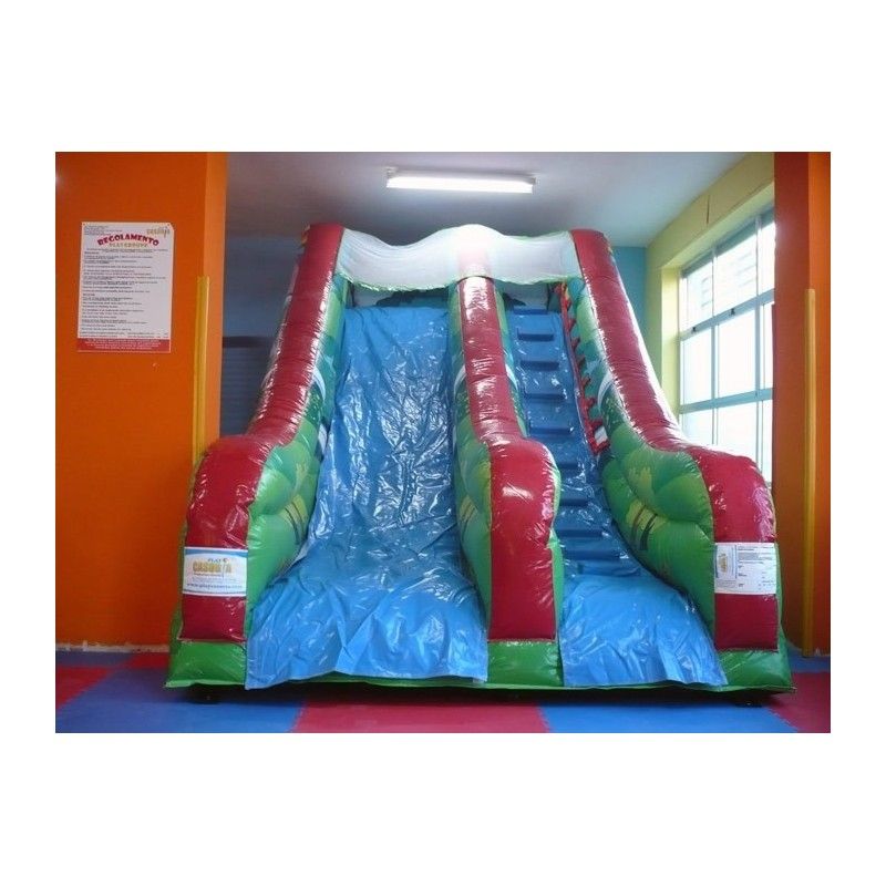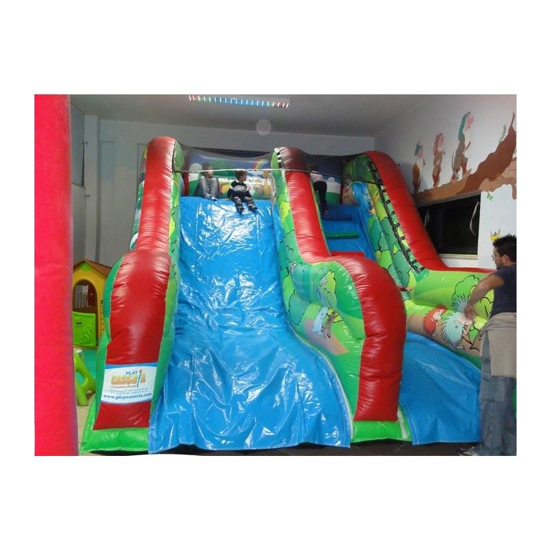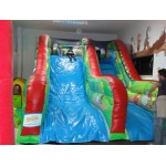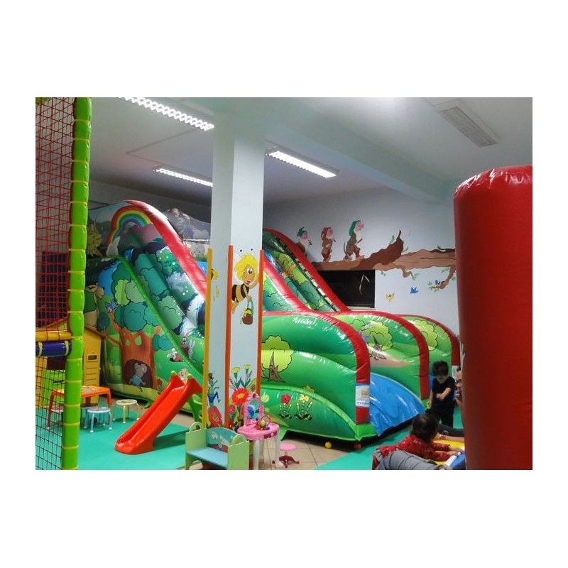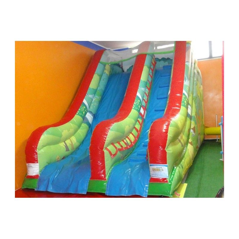 Scivolo gonfiabile Foresta. Adatto sia ad ambienti aperti che al chiuso. E’ uno scivolo pratico e versatile, facile da collocare grazie alla sua forma regolare. La sua scivolata non eccessivamente veloce lo rende adatto anche ai più piccoli. Scaletta di risalita con passamano. Rete di protezione nella parte superiore per un gioco in massima sicurezza. Conforme alla UNI EN 14960 Ideale per parchi gioco, parchi divertimento, giochi all'aperto, spiagge, stabilimenti balneari, aree di intrattenimento in generale, ludoteche, aree di ristoro, alberghi, ristoranti e pizzerie, sala feste.