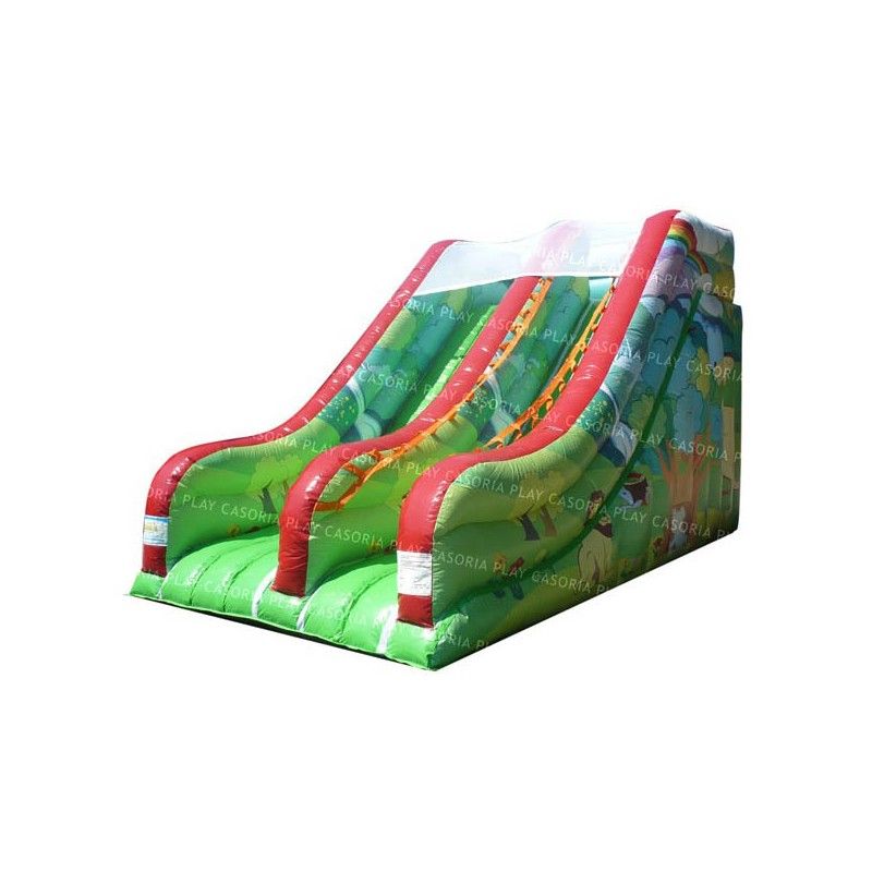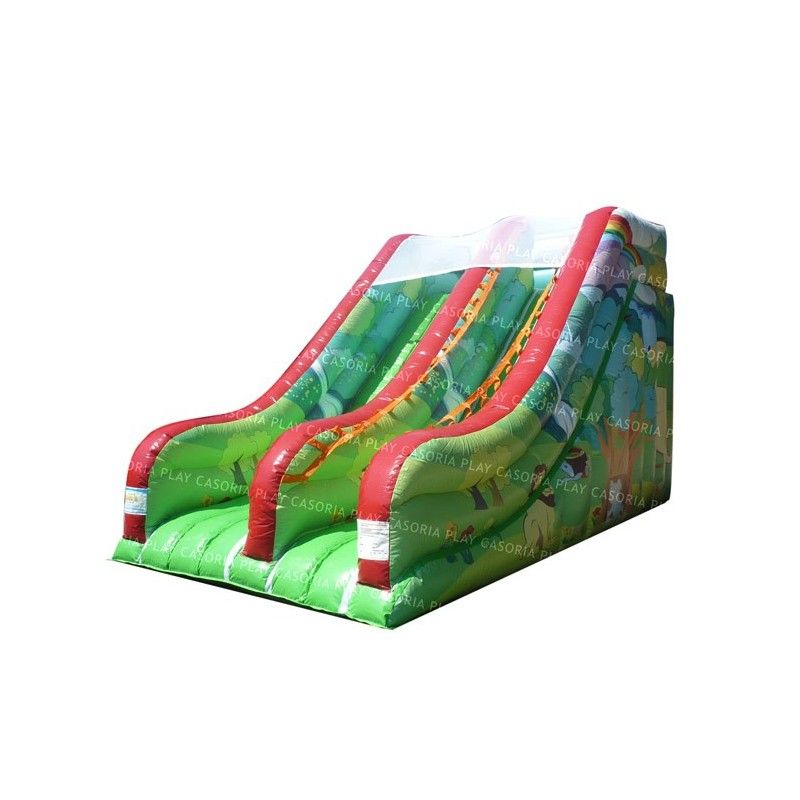 Scivolo gonfiabile Foresta. Adatto sia ad ambienti aperti che al chiuso. E’ uno scivolo pratico e versatile, facile da collocare grazie alla sua forma regolare. La sua scivolata non eccessivamente veloce lo rende adatto anche ai più piccoli. Scaletta di risalita con passamano. Rete di protezione nella parte superiore per un gioco in massima sicurezza. Conforme alla UNI EN 14960 Ideale per parchi gioco, parchi divertimento, giochi all'aperto, spiagge, stabilimenti balneari, aree di intrattenimento in generale, ludoteche, aree di ristoro, alberghi, ristoranti e pizzerie, sala feste.