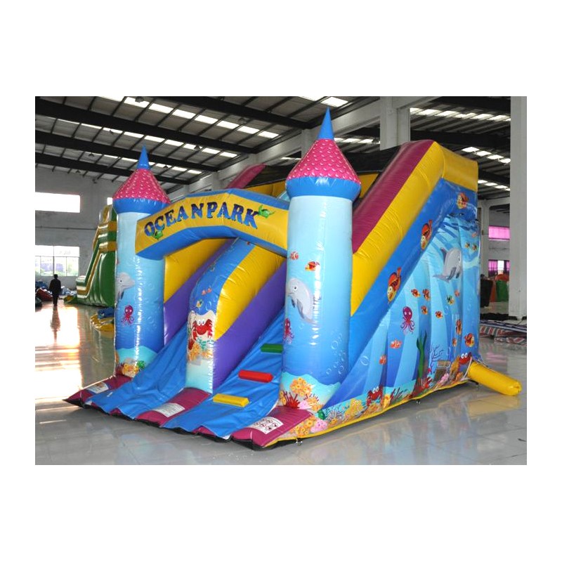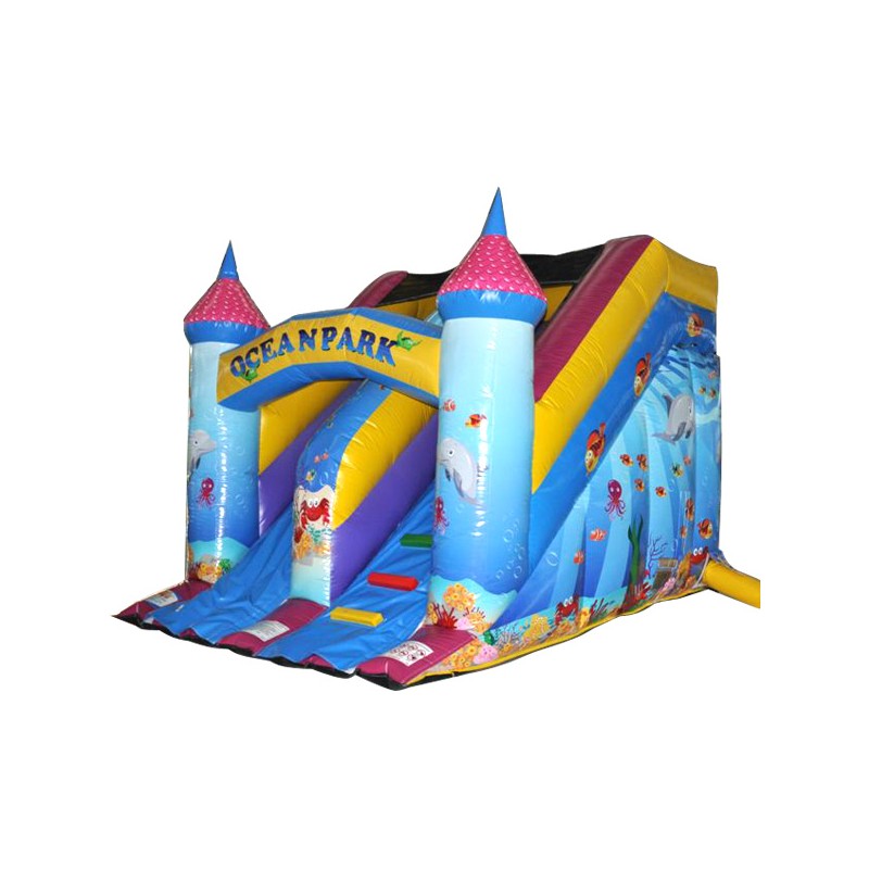 Scivolo gonfiabile Smart Ocean Park colorato e divertente. Ottimo l'impatto scenico, le dimensioni compatte lo rendono ideale per spazi ed aree ridotte. Conforme alla UNI EN 14960 Ideale per parchi gioco, parchi divertimento, giochi all'aperto, spiagge, stabilimenti balneari, aree di intrattenimento in generale, ludoteche, aree di ristoro, alberghi, ristoranti e pizzerie, sala feste.