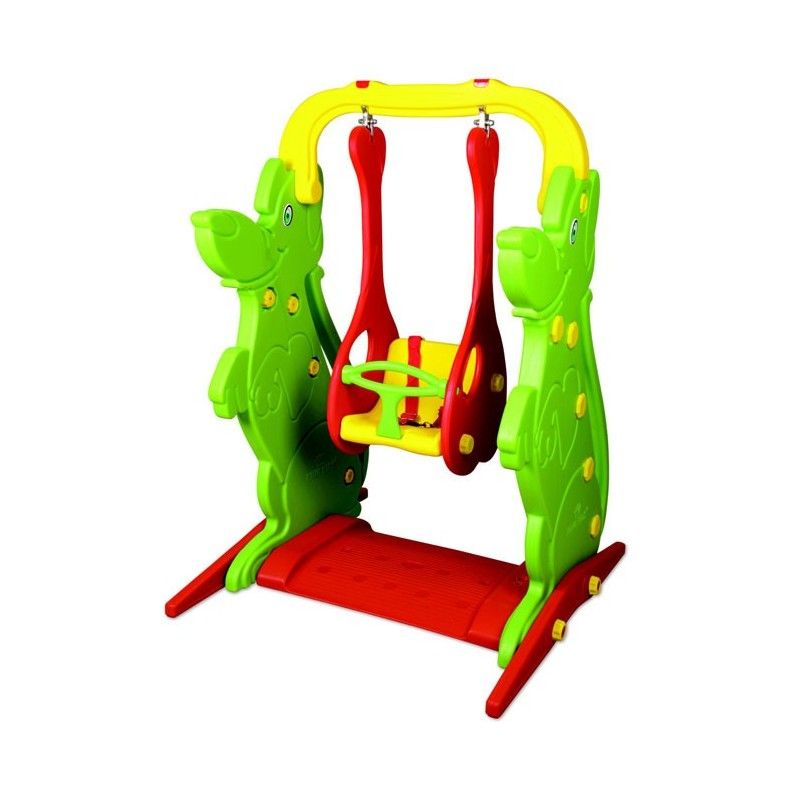 Altalena per esterno ed interno in HDPE. Solida e resistente, colori vivaci, con seduta tipo cestello per la massima sicurezza. Base zavorrabile con acqua o sabbia per aumentarne la stabilità.