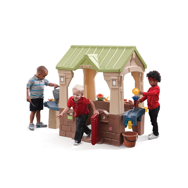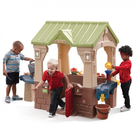 La Casetta Barbecue è un centro giochi interattivo e divertente, ideale per l’uso in esterno. Include numerosi accessori come una cassetta della posta, una ruota a pale, una pompa dell'acqua funzionante, un secchio e una base con vaso di fiori per coltivare piante vere. Il design aperto garantisce visibilità e sicurezza, permettendo ai genitori di sorvegliare facilmente i bambini. I più piccoli possono fingere di organizzare una grigliata attorno al barbecue giocattolo, stimolando il gioco simbolico e la socializzazione.