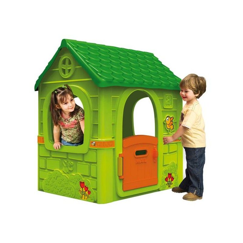 Casetta da gioco per bambini, da esterno e da interno, per giocare da soli, in famiglia o con gli amici, grazie al suo ampio spazio interno.I più piccoli adoreranno giocare all'aria aperta. Tetto spiovente e mattoni stampati, in piena armonia con il verde della natura. Adesivi e applicazioni a tema da applicare.