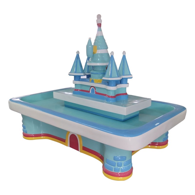Tavolo sabbiera castello. Questo bellissimo tavolo in resina è composto da una vasca che può contenere sabbia cinetica o acqua per far divertire i bambini. La sabbia cinetica consente di giocare e creare forme come si farebbe in spiaggia però restando puliti e seduti comodamente vicino al tavolo. Ideale per ludoteche, scuole, nidi, ecc..