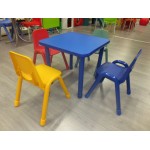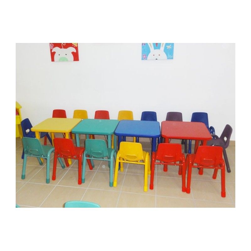 Robusta sedia per bambini in PE con piedi in metallo. Ideale per asili, nidi, attività didattiche e ristorative per bambini.