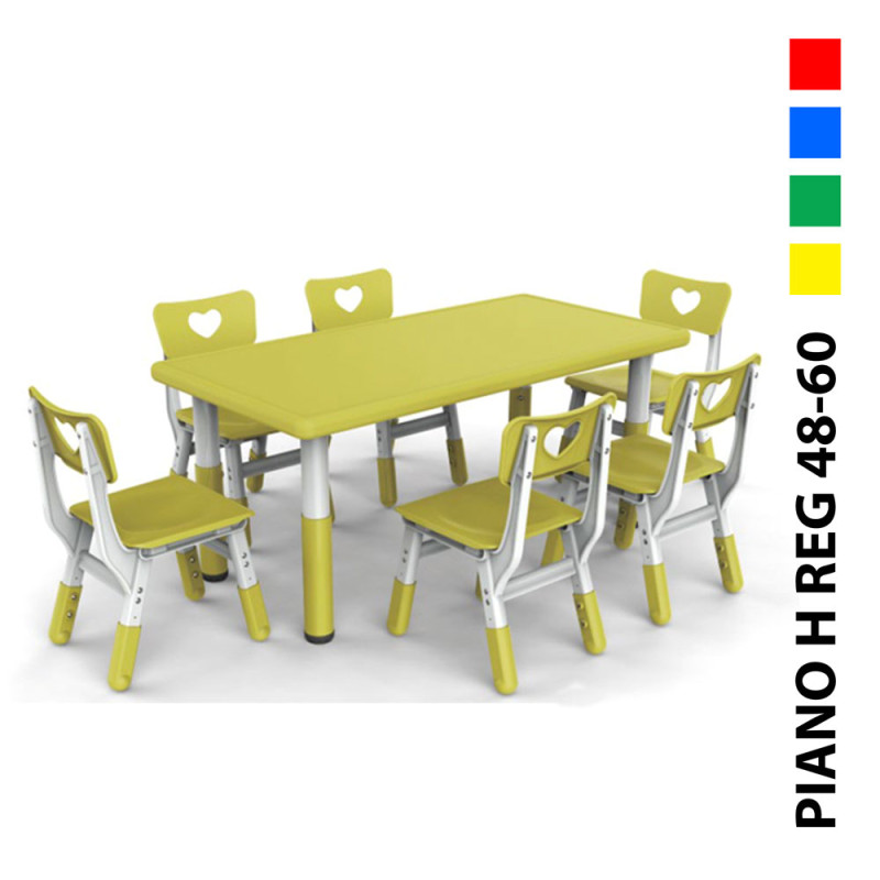 Tavolo rettangolare in plastica altezza regolabile da 48 a 60 cm. Ideale per scuole, asilo, ludoteca e aree didattiche per bambini.