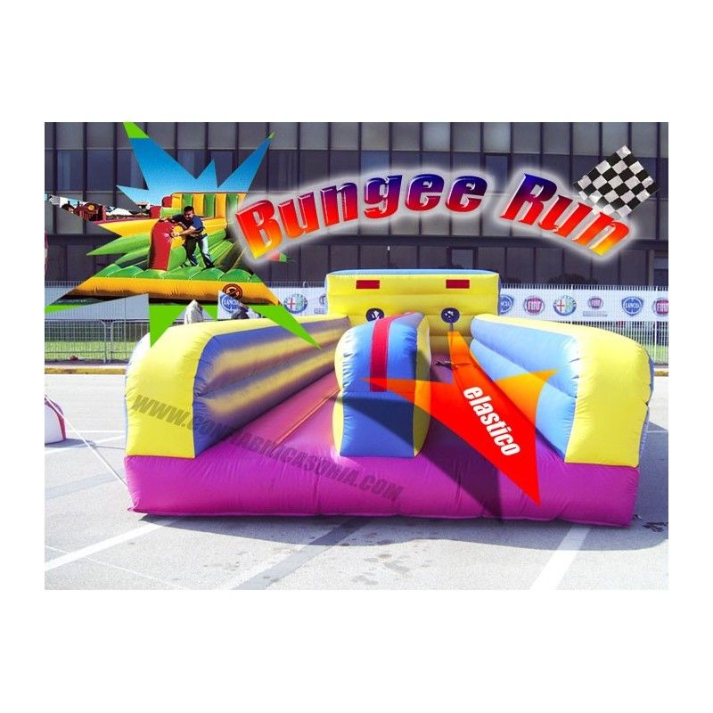 USATO FIERA. Gioco gonfiabile sportivo Bungee Run. Ideale per le sfide a due. Vince il giocatore che sarà più forte dell'elastico ed arriverà per primo in fondo. Conforme alla UNI EN 14960. Ideale per parchi gioco, parchi divertimento, giochi all'aperto, spiagge, stabilimenti balneari, aree di intrattenimento in generale.