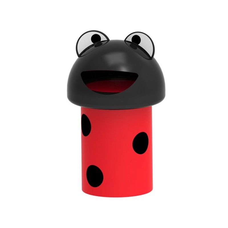 Cestino Coccinella per rifiuti. Bellissimo portarifiuti con le sembianze di una coccinella che lo rende simpatico per i bambini restando allo stesso tempo semplice ed essenziale. Ideale per parchi gioco, aree verdi, agriturismi, percorsi avventura, centri commerciali e parchi pubblici.