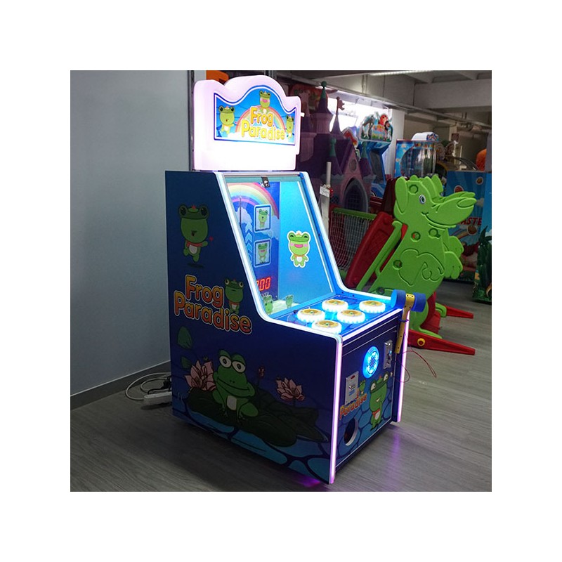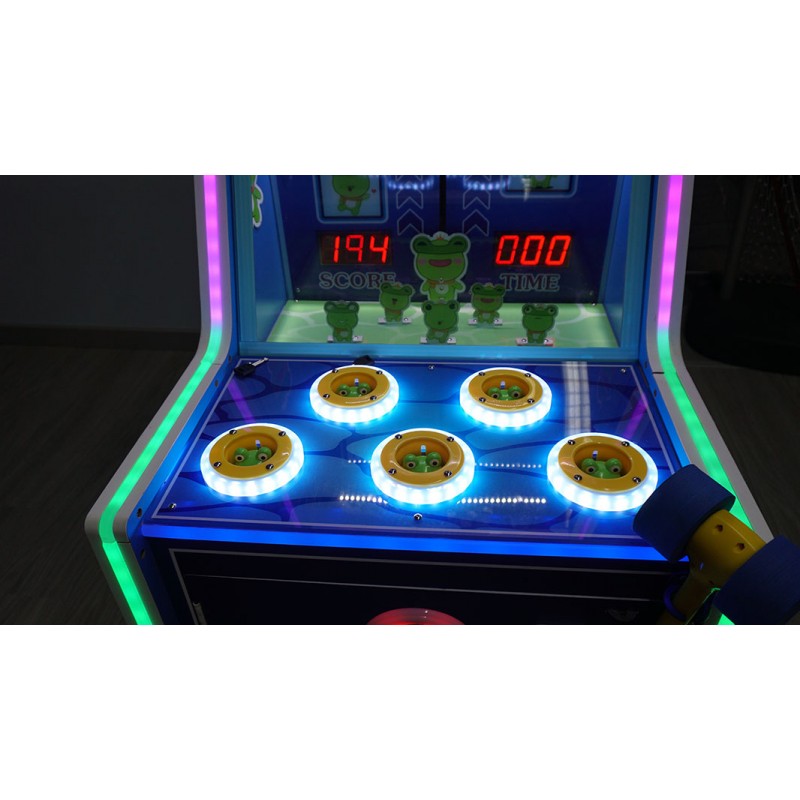 Mini redemption divertente e dinamico pensato per i bambini. Il gioco consiste nel colpire con un martello le rane che sbucano dalle loro tane. L’obiettivo è far avanzare il Principe Ranocchio fino alla cima del tabellone accumulando punti bonus. Un gioco che stimola i riflessi e la coordinazione, accompagnato da effetti luminosi e sonori. Funziona a gettoni o monete.