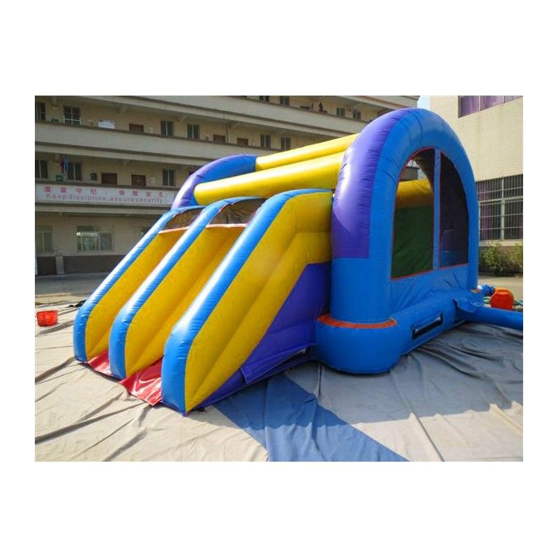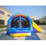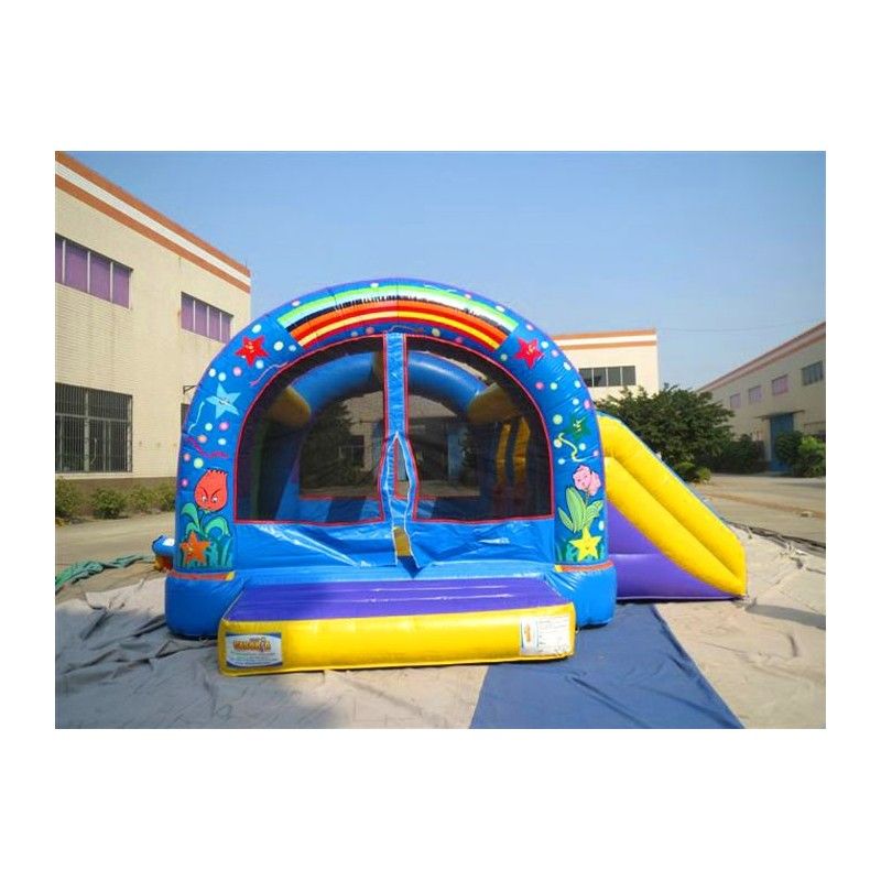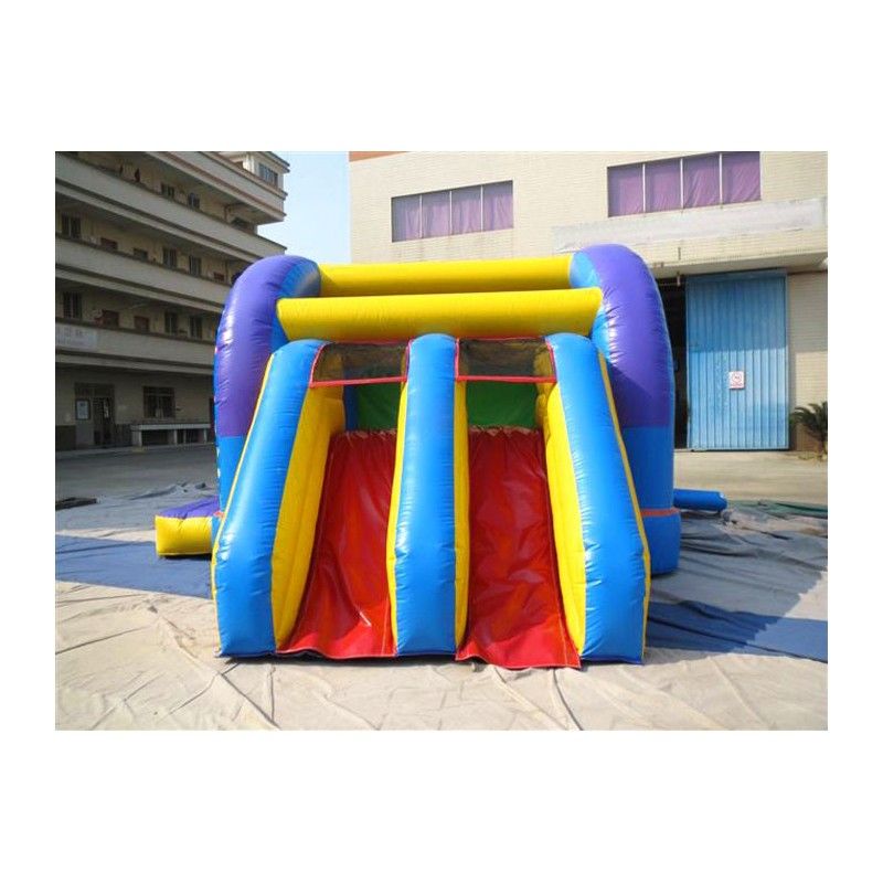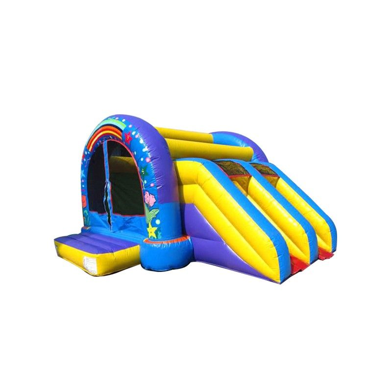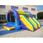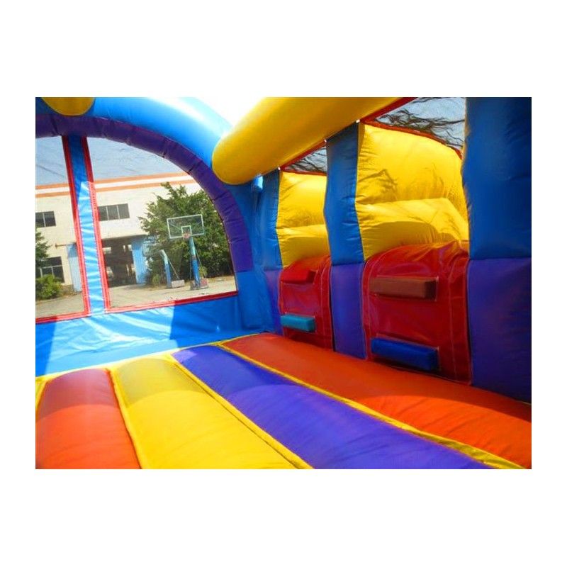 Coloratissimo gonfiabile Percorso Arcobaleno. La struttura è dotata di un modulo salta salta completo di ostacoli ed uno scivolo ampio per un divertimento garantito. Conforme alla UNI EN 14960. Ideale per parchi gioco, parchi divertimento, giochi all'aperto, spiagge, stabilimenti balneari, aree di intrattenimento in generale, ludoteche, aree di ristoro, alberghi, ristoranti e pizzerie, sala feste.