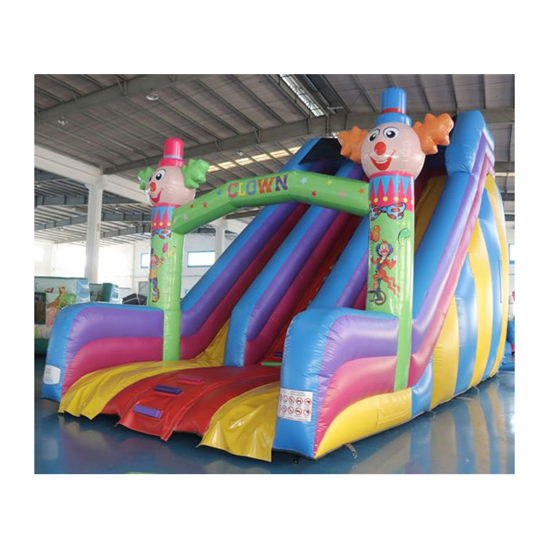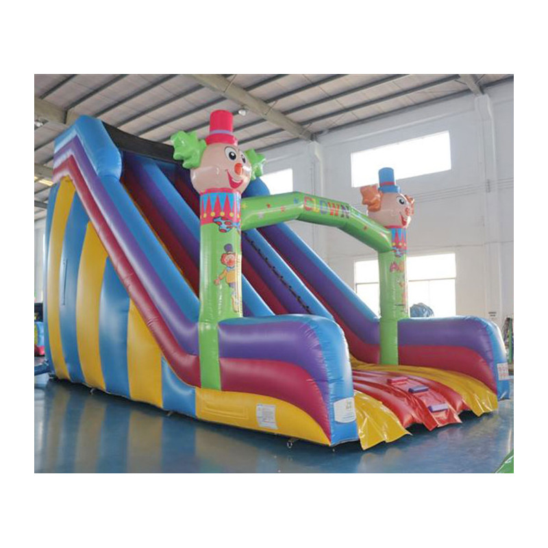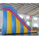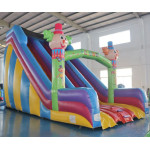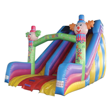 Scivolo gonfiabile BIG CIRCUS a doppia scivolata. Questo bellissimo gioco gonfiabile si presta benissimo ad usi esterni data la sua dimensione ed imponenza. E' dotato di due discese veloci ed una risalita centrale con passamano. L’arcata centrale presenta in rilievo la testa di noto personaggio dei cartoon. Conforme alla UNI EN 1496. Ideale per parchi gioco, parchi divertimento, giochi all'aperto, spiagge, stabilimenti balneari, aree di intrattenimento in generale, ludoteche, aree di ristoro, alberghi, ristoranti e pizzerie, sala feste.