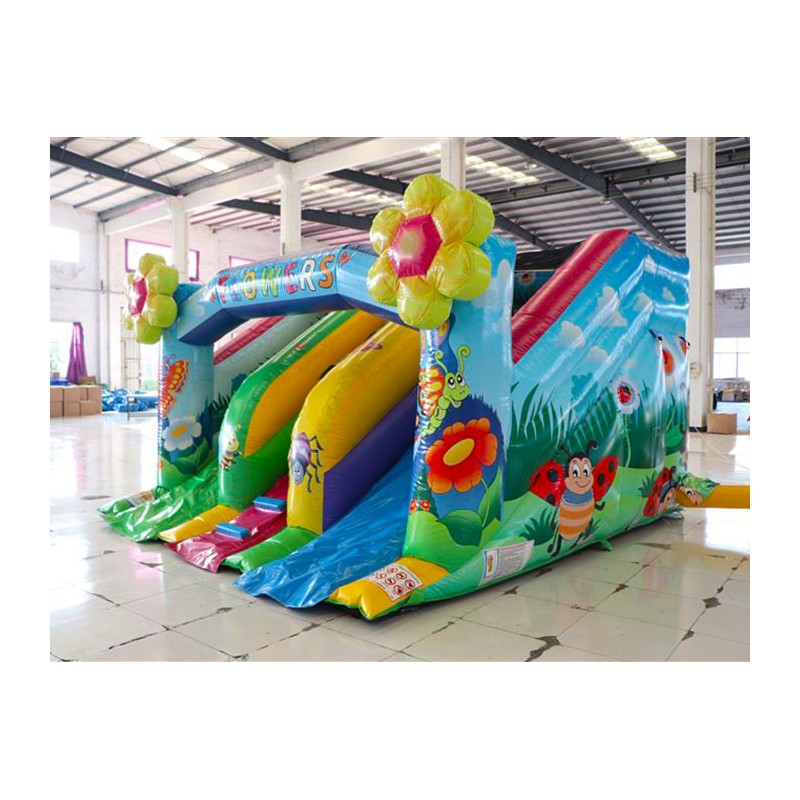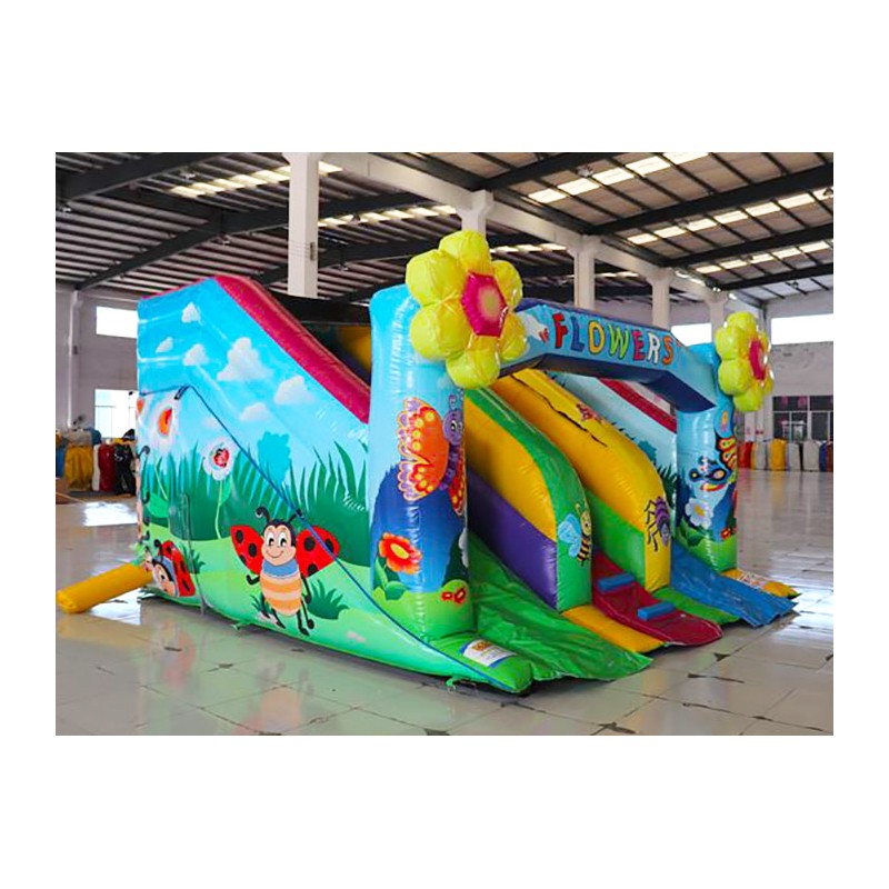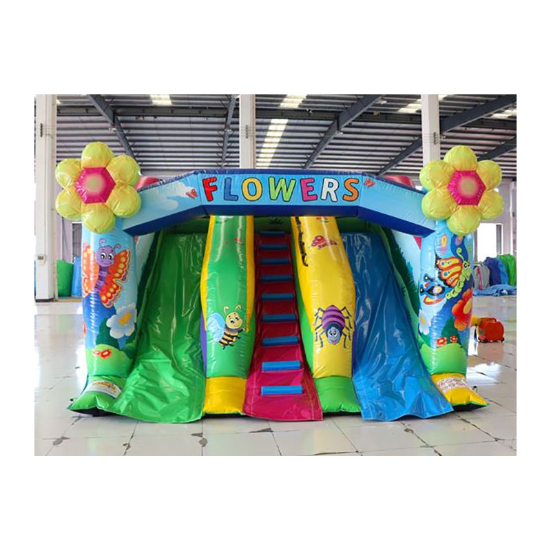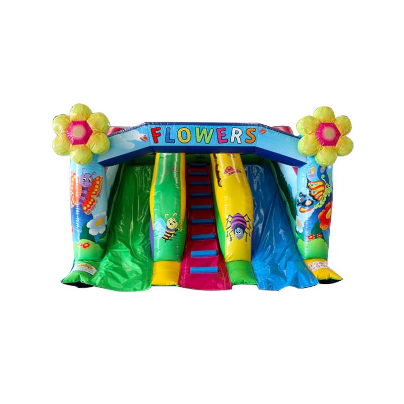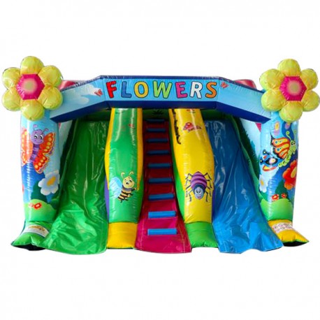 Scivolo gonfiabile Flower colorato e divertente.Ottimo l'impatto scenico, veloce la scivolata. Il doppio scivolo consente discese multiple ed in contemporanea per un divertimento maggiore. Risalita centrale con doppio passamano per una semplice risalita senza fatica. Conforme alla UNI EN 14960 Ideale per parchi gioco, parchi divertimento, giochi all'aperto, spiagge, stabilimenti balneari, aree di intrattenimento in generale, ludoteche, aree di ristoro, alberghi, ristoranti e pizzerie, sala feste.