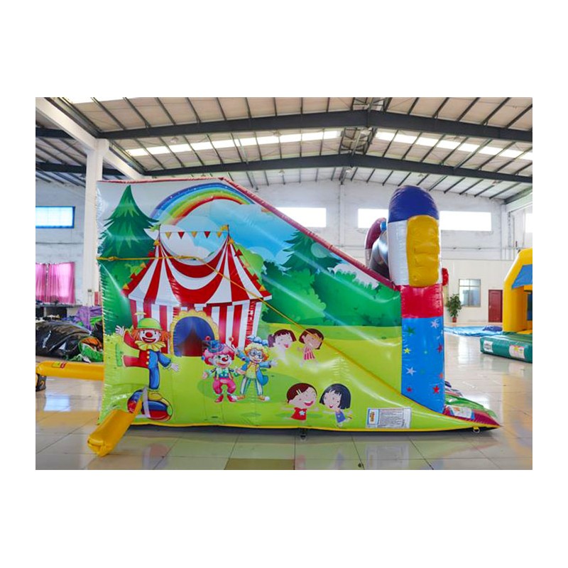 Scivolo gonfiabile Smart Clown colorato e divertente. Ottimo l'impatto scenico, le dimensioni compatte lo rendono ideale per spazi ed aree ridotte. Conforme alla UNI EN 14960. Ideale per parchi gioco, parchi divertimento, giochi all'aperto, spiagge, stabilimenti balneari, aree di intrattenimento in generale, ludoteche, aree di ristoro, alberghi, ristoranti e pizzerie, sala feste.