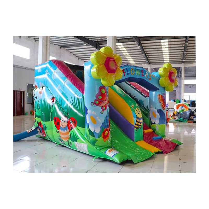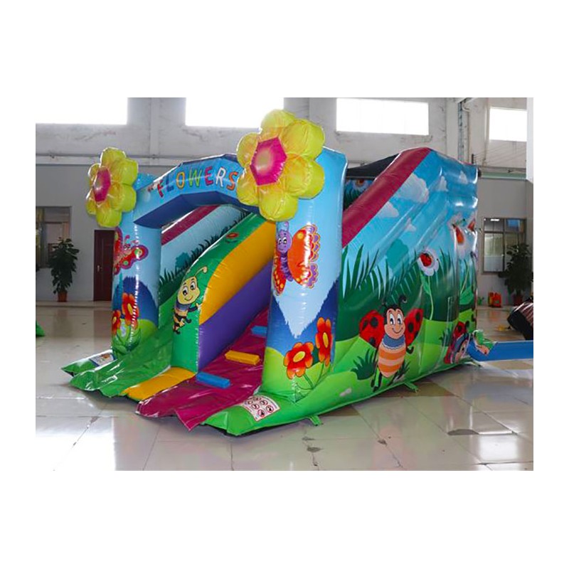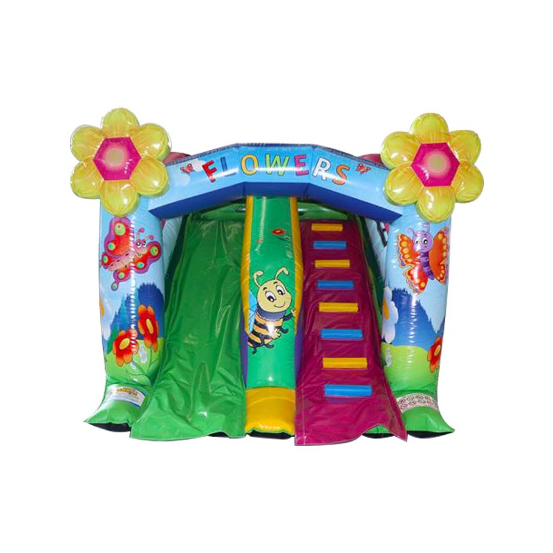 Scivolo gonfiabile Smart Flowers colorato e divertente. Ottimo l'impatto scenico, le dimensioni compatte lo rendono ideale per spazi ed aree ridotte. Conforme alla UNI EN 14960 Ideale per parchi gioco, parchi divertimento, giochi all'aperto, spiagge, stabilimenti balneari, aree di intrattenimento in generale, ludoteche, aree di ristoro, alberghi, ristoranti e pizzerie, sala feste.